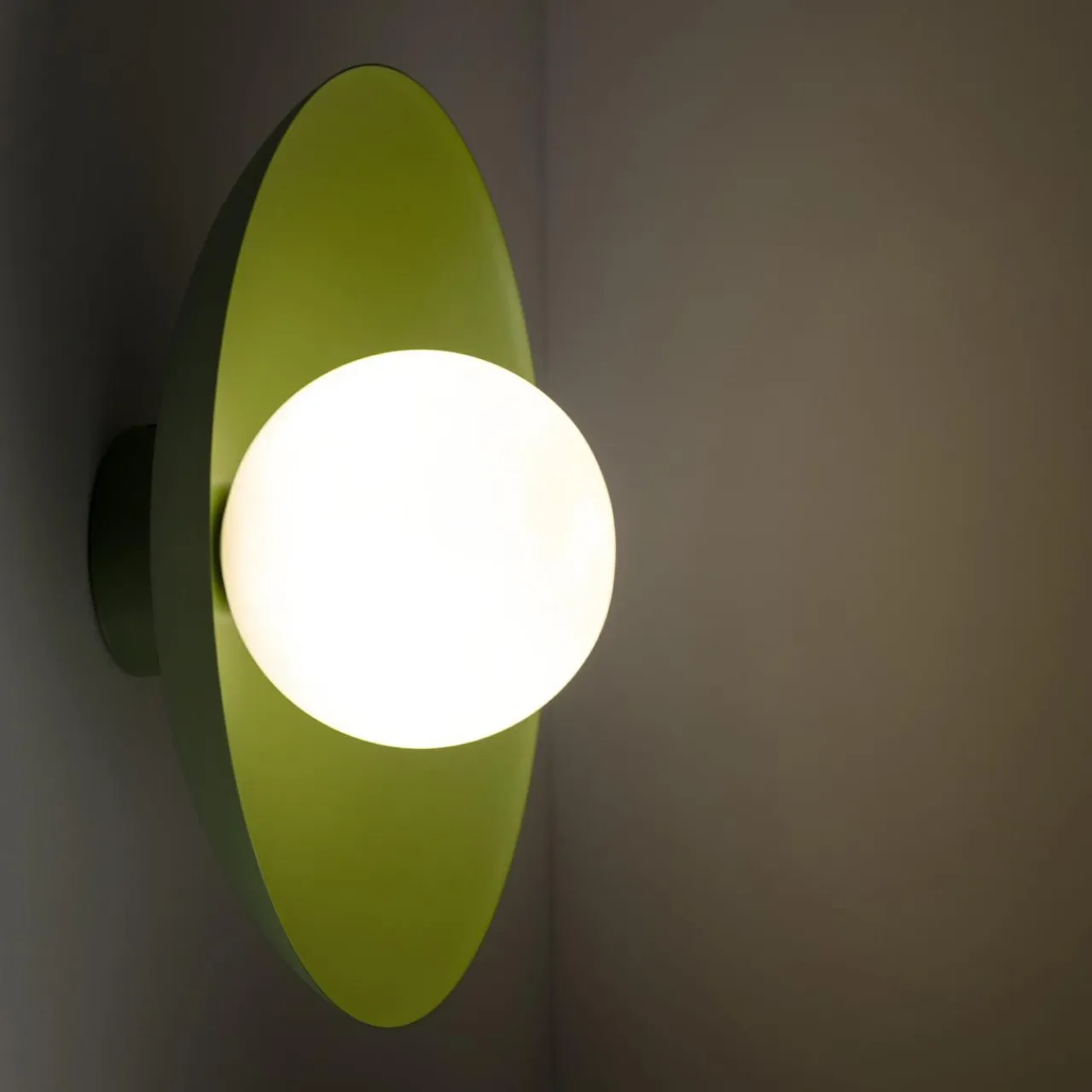 - Podstawa kinkietu jest lekko wklęsła, wykonana z lakierowanego metalu.