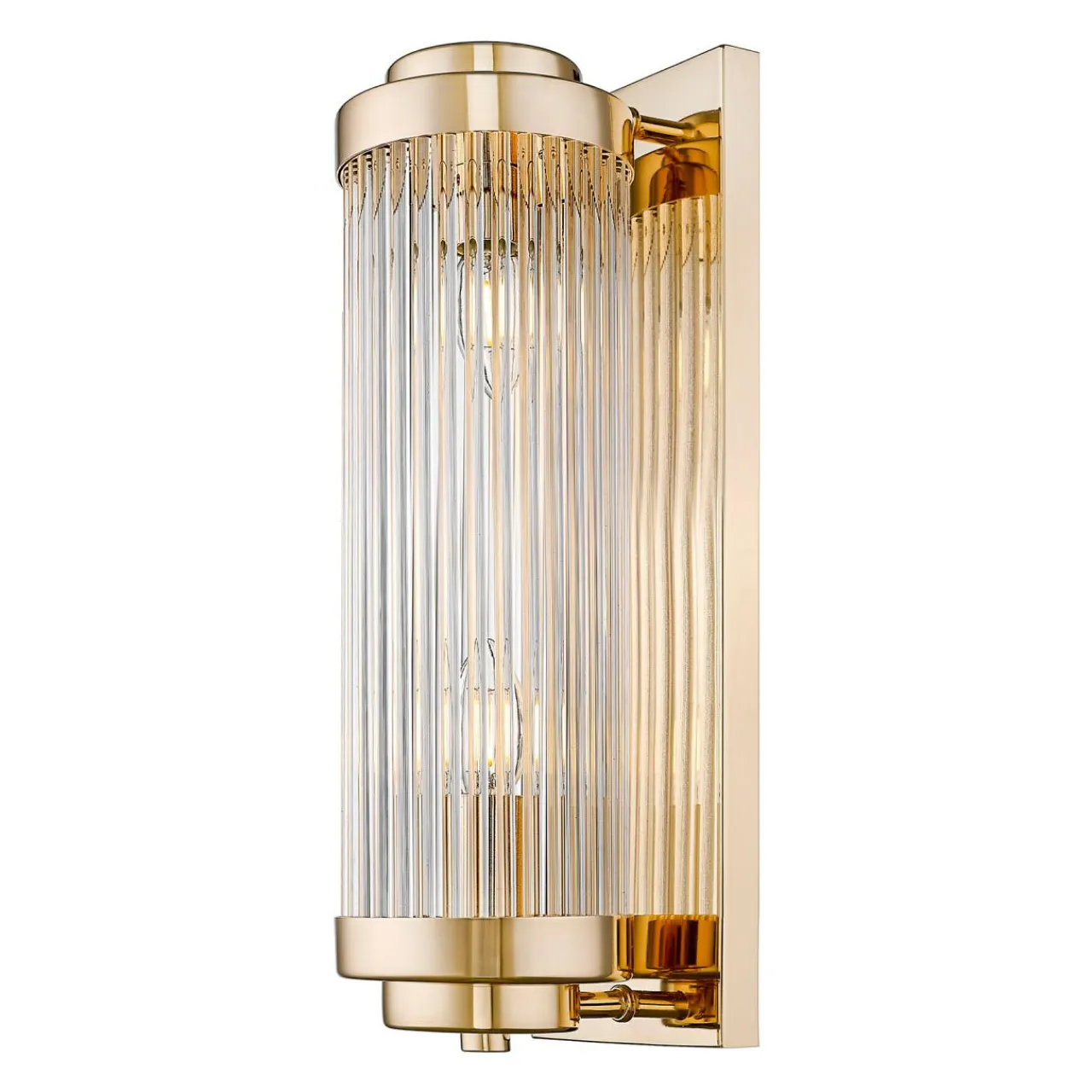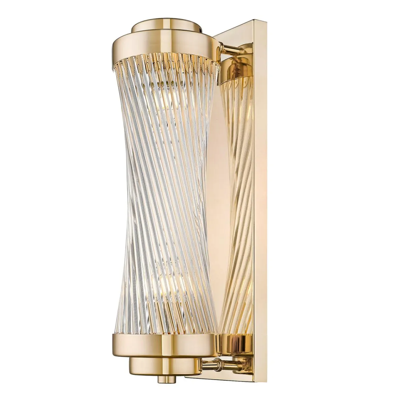Szklany klosz ułożony ze szklanych elementów tworzy kształt walca. Całość wkomponowana jest w metalowe obramowanie i wzbogacona wykończeniem w kolorze francuskiego złota. Wspaniale łączy się z jasnymi kolorami i pięknie prezentuje zarówno we wnętrzach klasycznych, jak również tchnących nowoczesnością. Jest również wysmakowanym dodatkiem, który współgra ze stylem glamour oraz nowojorskim.