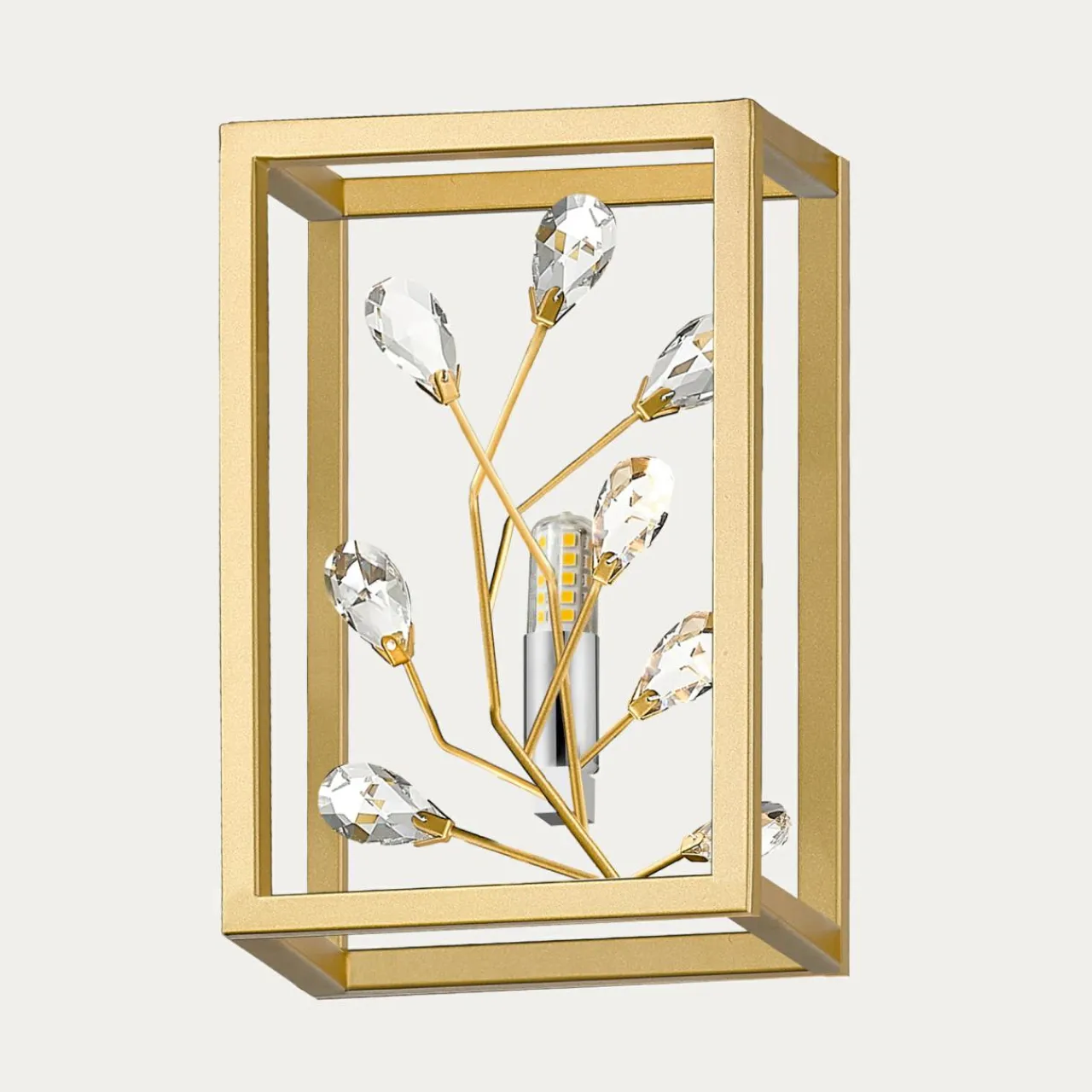 - Kinkietem SPRING ozdobisz salon i jadalnię – żarówka G9 generuje światło, które jest rozpraszane przez ozdobne kryształki.