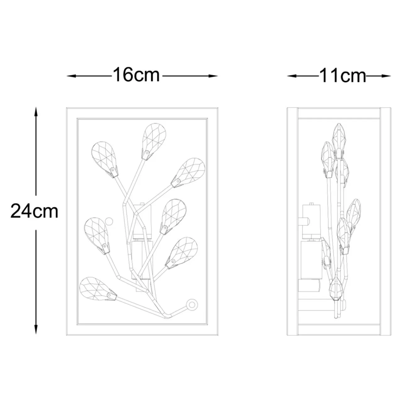 Wiosenna oprawa lampy stylizowana na kwitnącą gałąź podkreślona została akrylowymi kryształkami i zamknięta w prostej, geometrycznej formie oprawy.