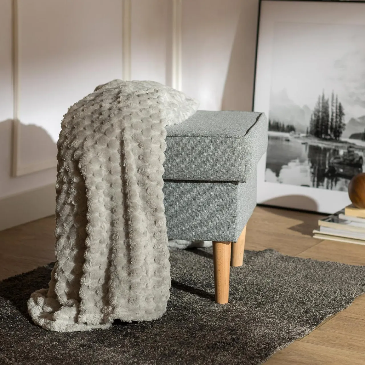 Szukasz praktycznego i pięknego okrycia na długie zimowe wieczory z książką i filiżanką rozgrzewającej herbaty w dłoni? Szary koc SQUADRO będzie tym, którego szukasz. Otuli Cię i rozgrzeje, gdy będziesz tego potrzebować.