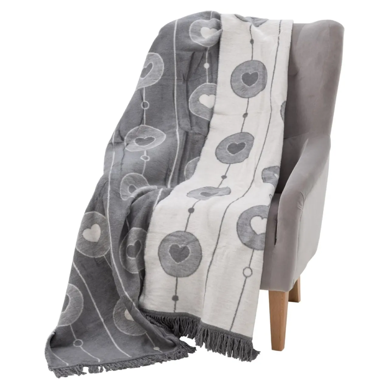- Koc jest wykonany z wysokiej jakości tkaniny o niezwykle przyjemnej w dotyku, gładkiej fakturze.