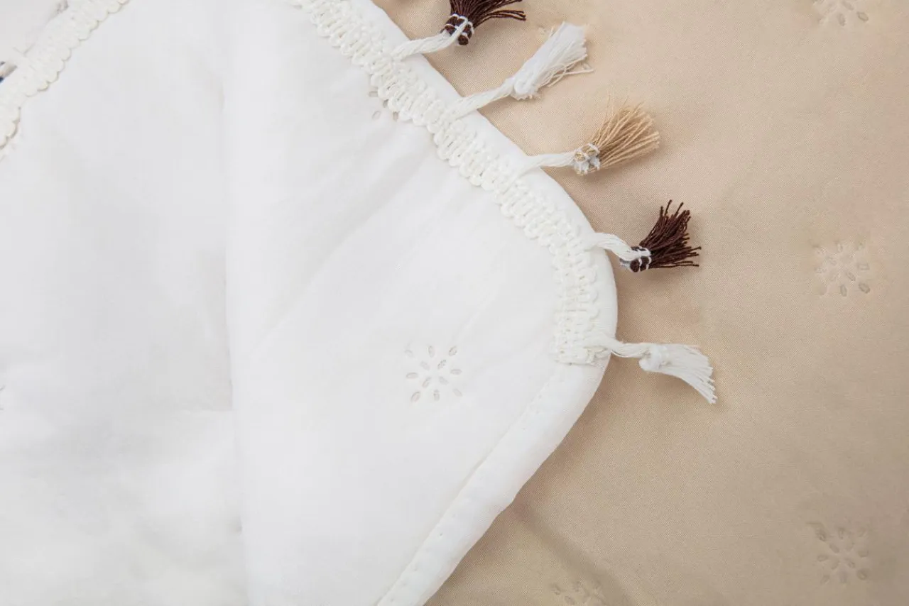 Kilka ozdobnych frędzli i delikatne gwiazdki dodają jej uroku. Sprawi, że Twoja sypialnia będzie miła dla oka.