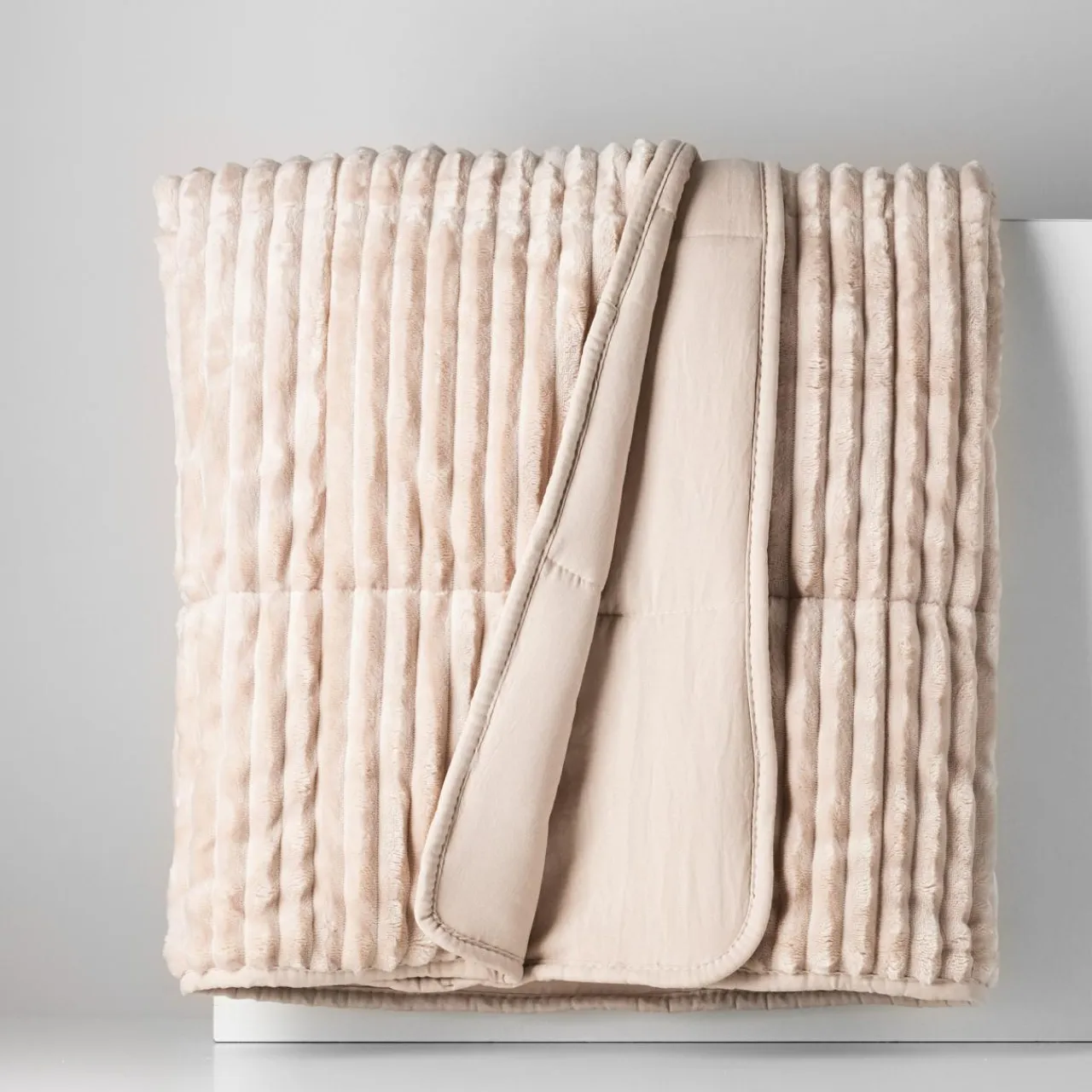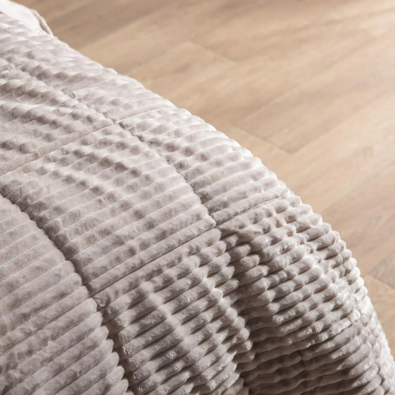 - Materiał, z którego została uszyta, to poliester. Tkanina jest miła i miękka w dotyku, przypomina sztruks. Przyjemnie będzie schować się pod nią i zatopić w lekturze ulubionej książki.