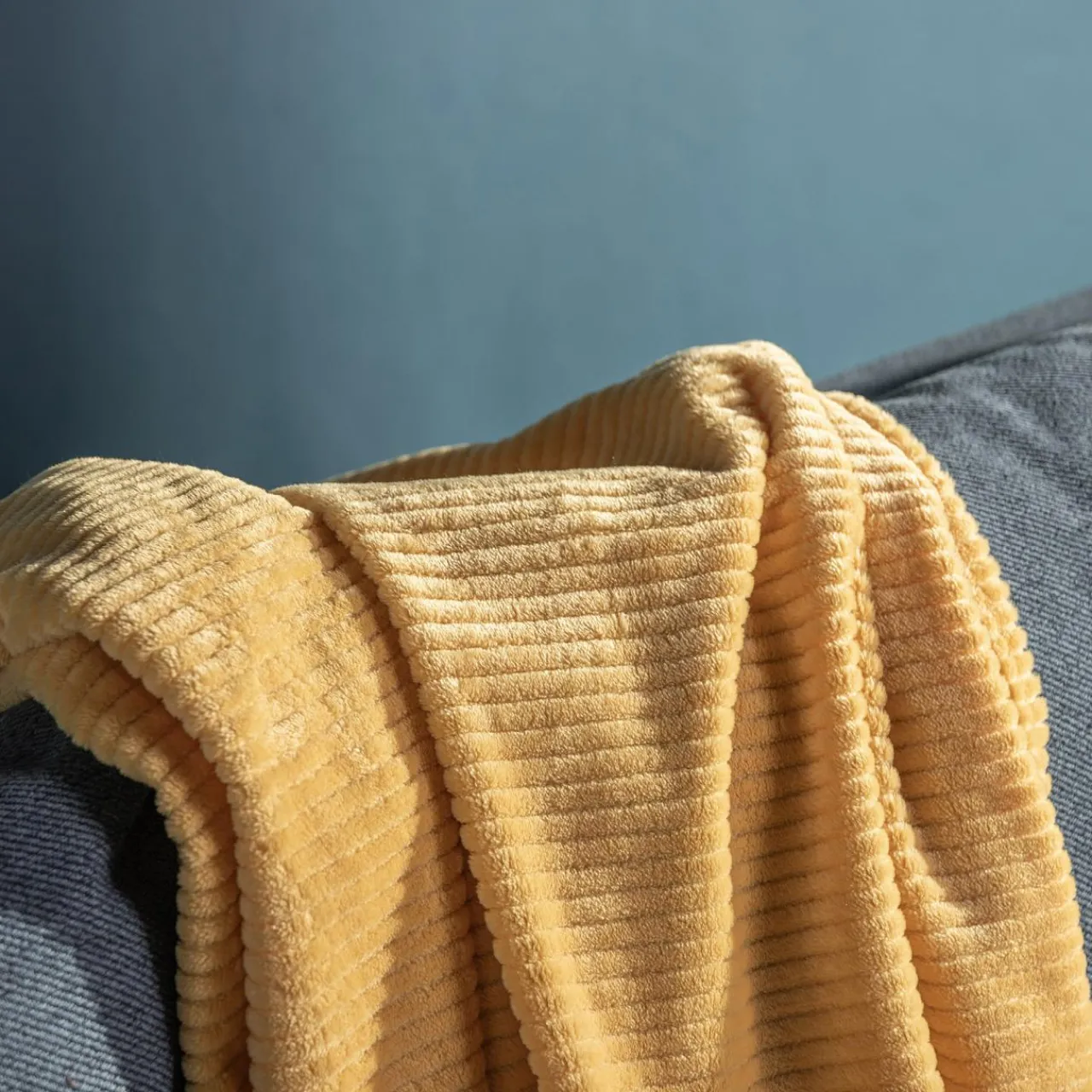 Chcesz się otulić w chłodniejszy dzień? Musztardowy koc RENEE pomoże miło się ogrzać i zrelaksować.
