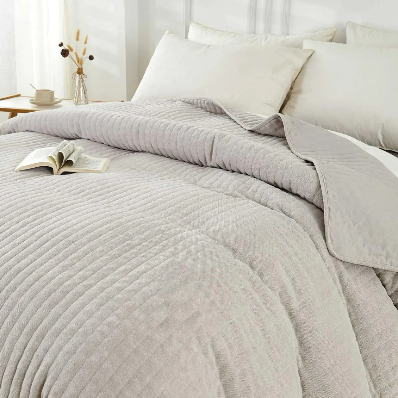 Narzutę CASSIEN o wymiarach 220×240 cm położysz na dużym łóżku dla dwojga w sypialni w stylu minimalistycznym lub skandynawskim.