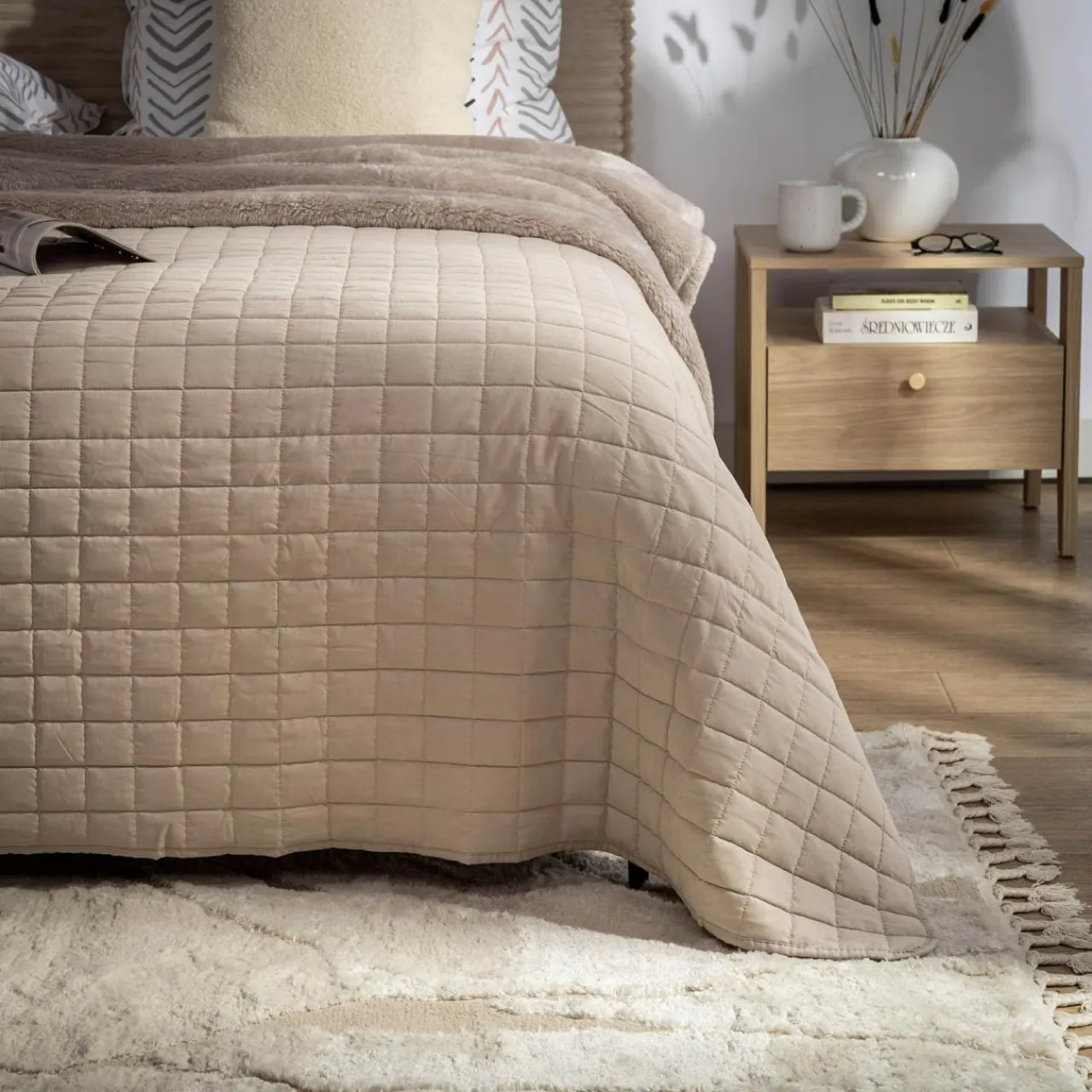 Beżowa narzuta GISELLE w stonowanym odcieniu oraz dekoracyjnej fakturze podkreśli harmonijną atmosferę – ozdobi nowoczesną i minimalistyczną aranżację.