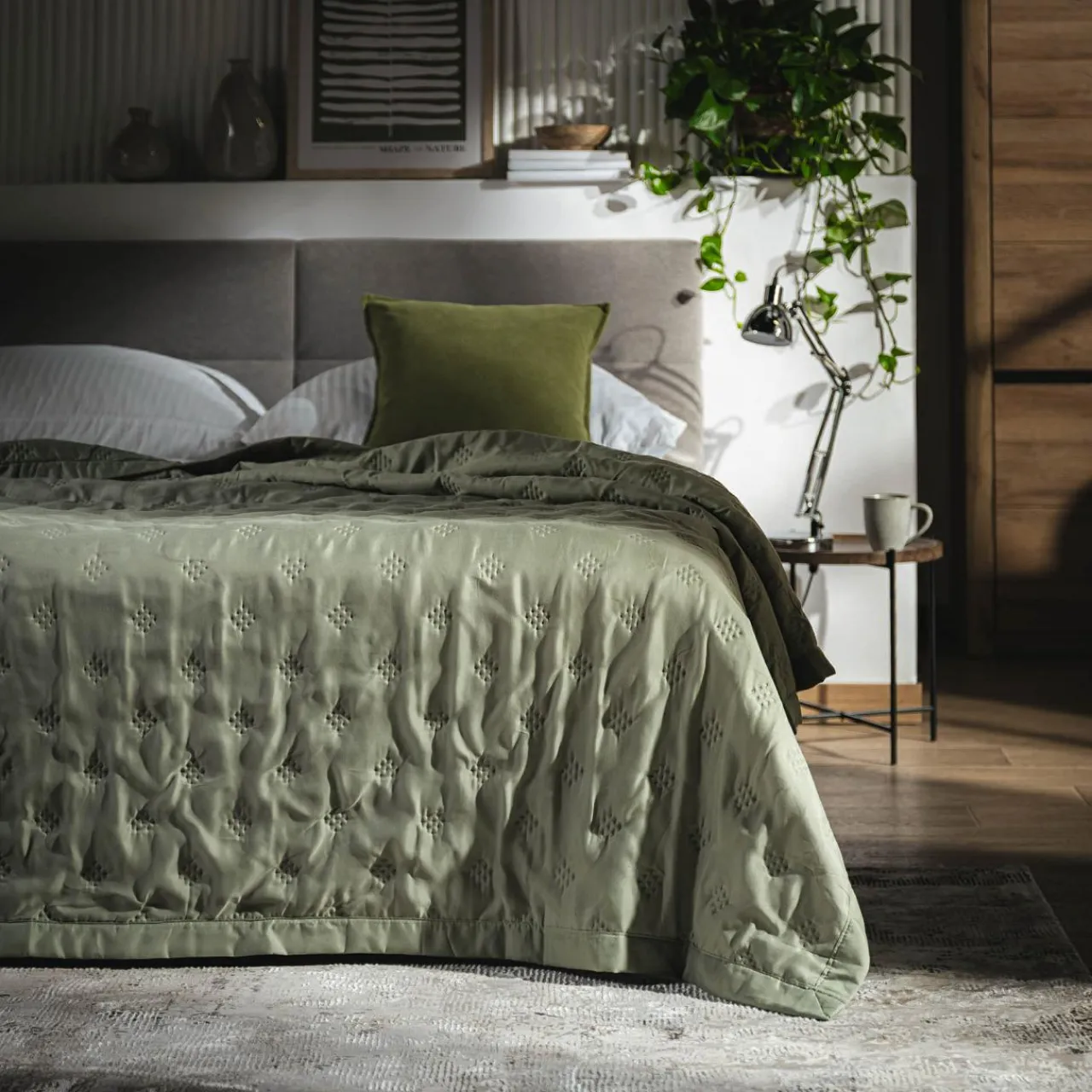 Oliwkowy kolor jest przyjemny dla oczu. Podkreśli harmonijne, wyciszające aranżacje.