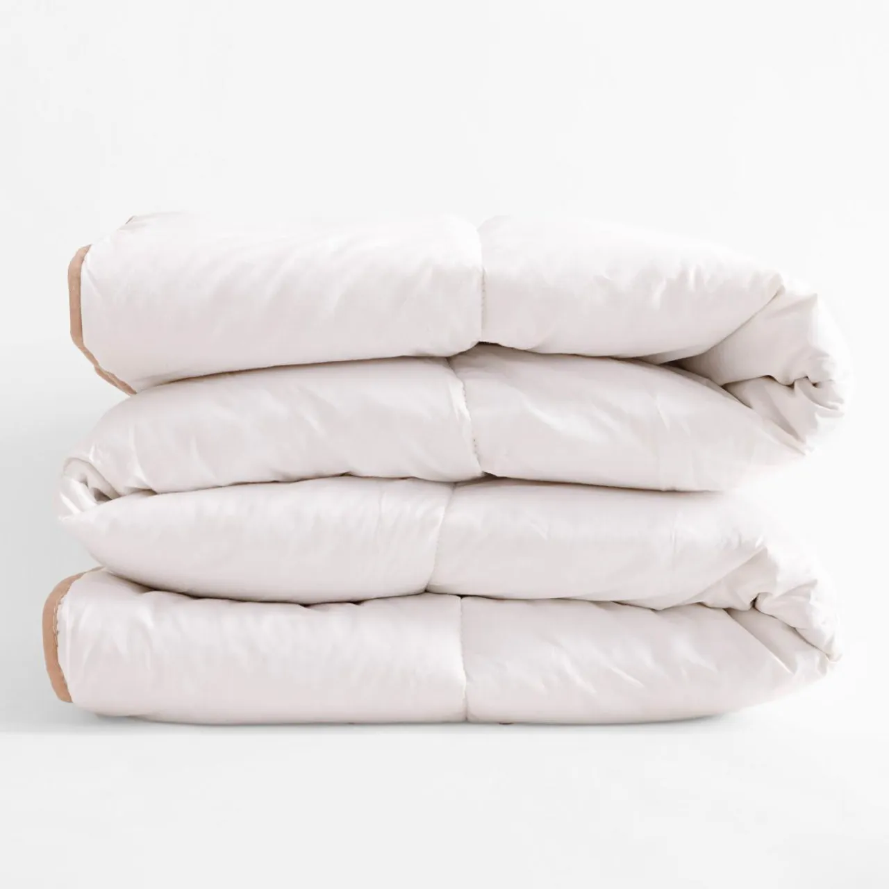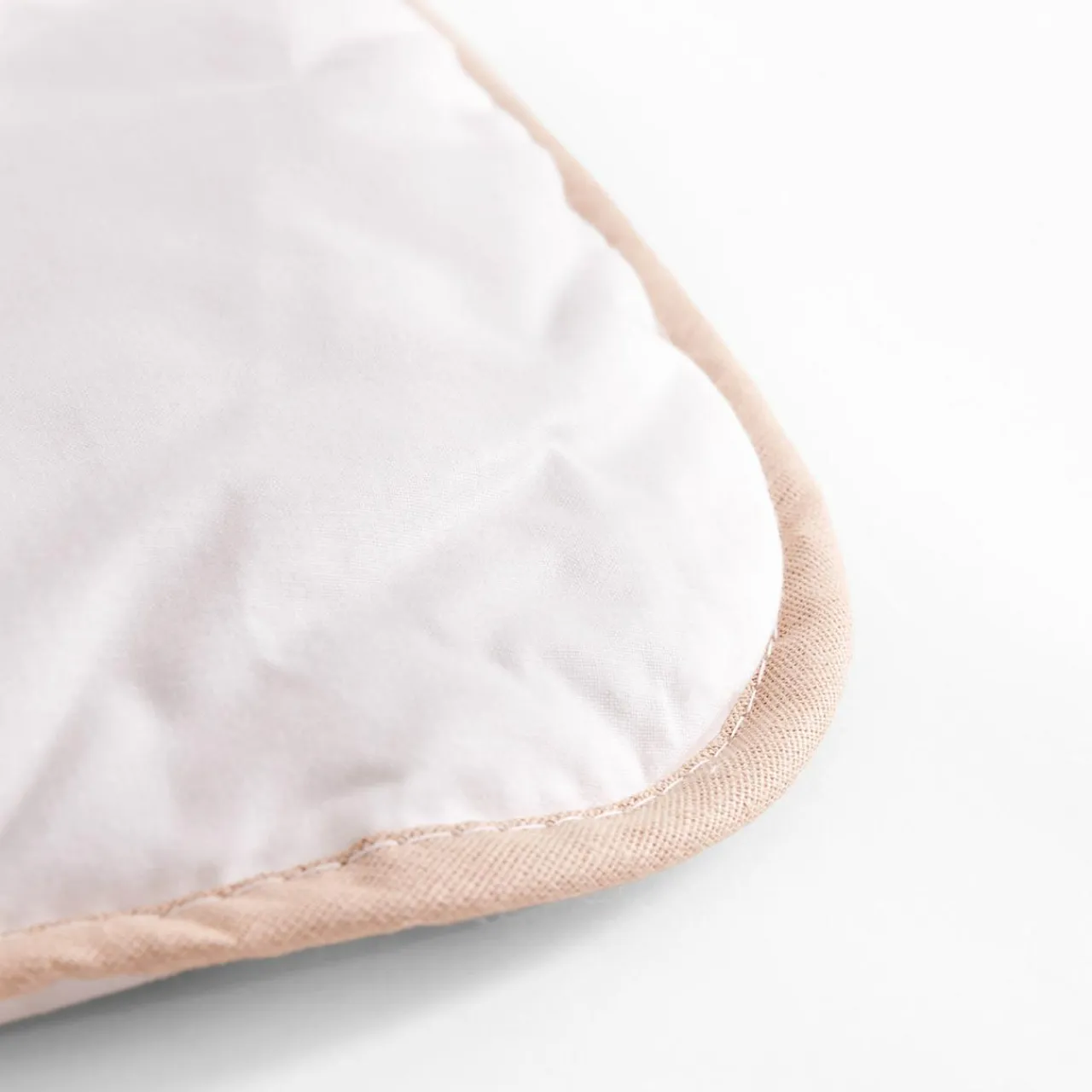 Wykończenie kołdry lamówką w naturalnym odcieniu dodaje jej elegancji i poprawia wytrzymałość krawędzi.
