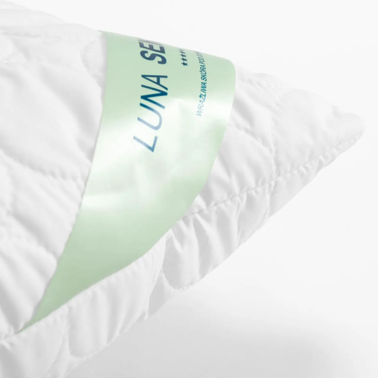 Poduszka z kolekcji LUNA SENSIVIA ALOE ma kwadratowy kształt. Wygodnie podeprze kark oraz głowę.