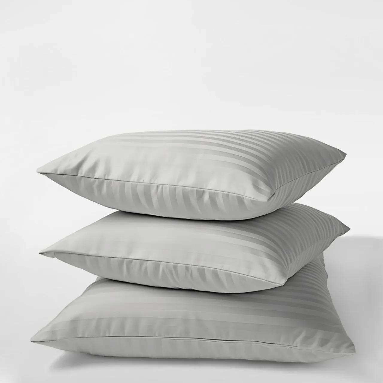 Komplet 2 szarych poszewek jest uszyty z adamaszku – dobrze izoluje ciepło i wygląda ekskluzywnie.