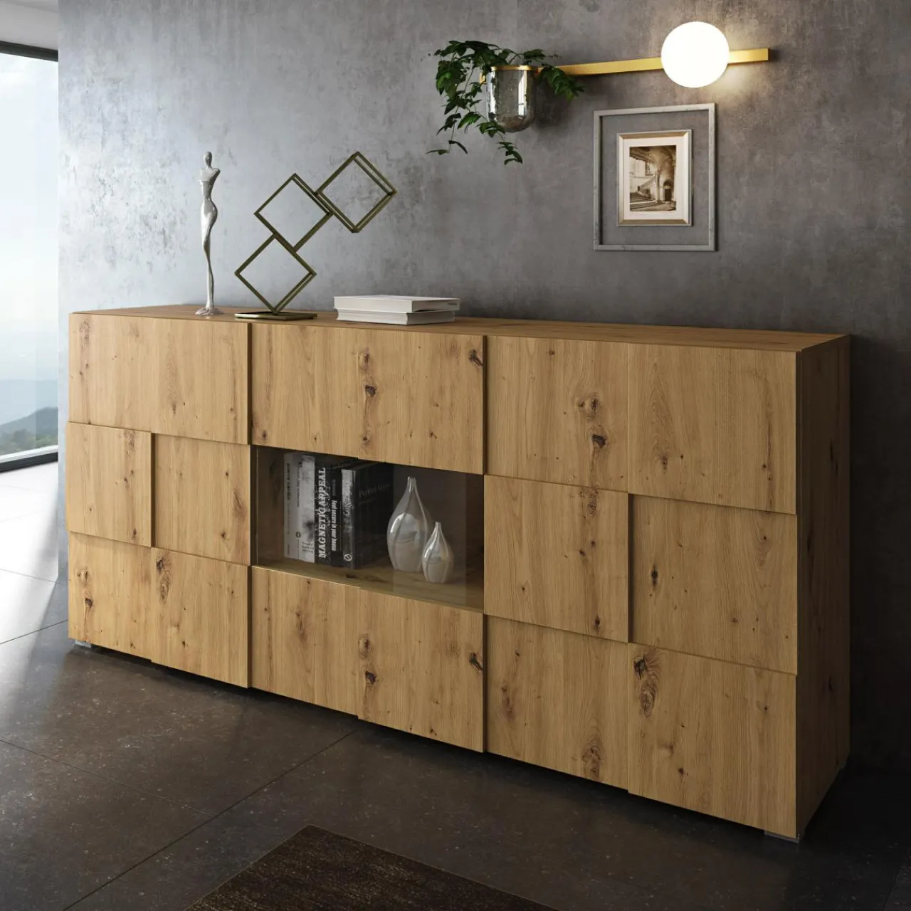 Lubisz niestandardowe i nowoczesne rozwiązania we wnętrzach? Szeroka komoda 3D PATRIK to mebel, który odmieni przestrzeń salonu lub pokoju dziennego.