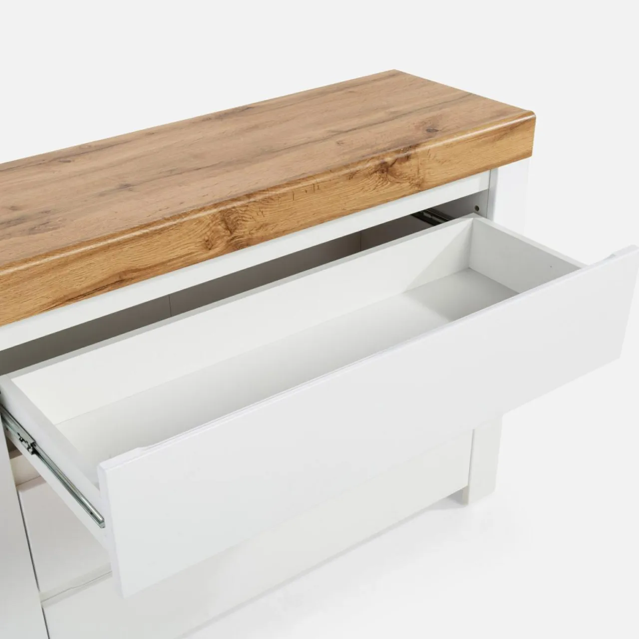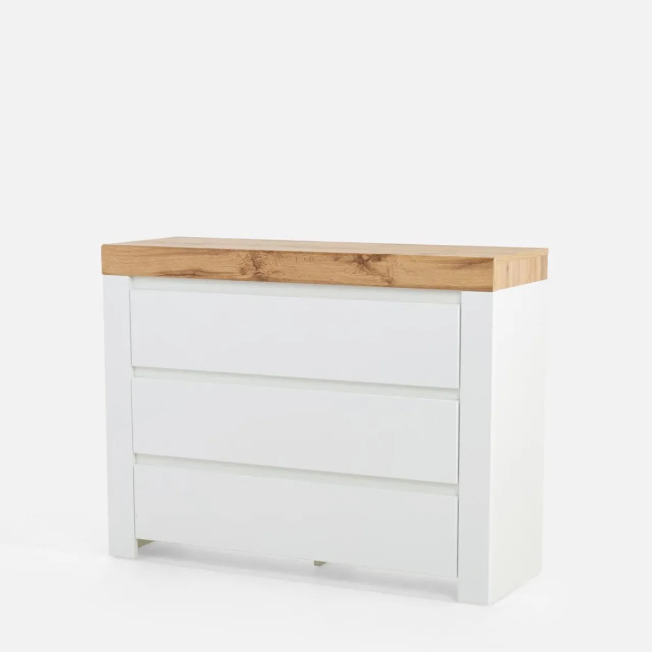 W komodzie TAURUS II schowasz drobną część garderoby — bieliznę, akcesoria do stylizacji i pozostałe przedmioty w pokoju.
