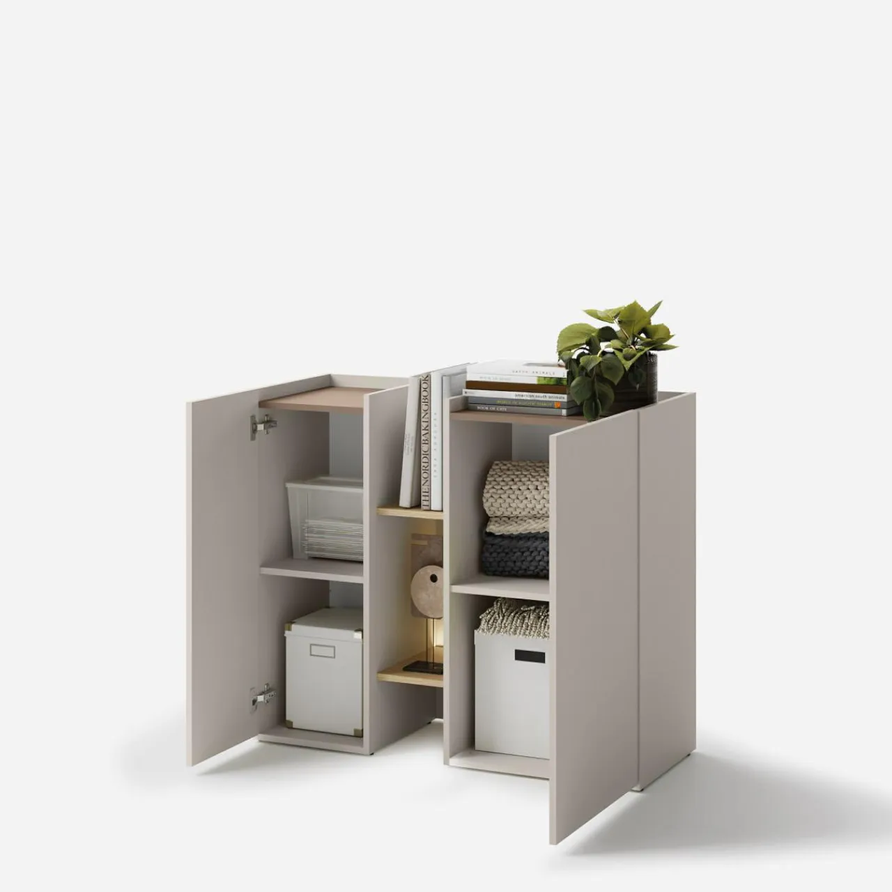 - Za drzwiami znajdują się 4 wnęki, które pozwolą Ci posegregować dokumenty czy ubrania.