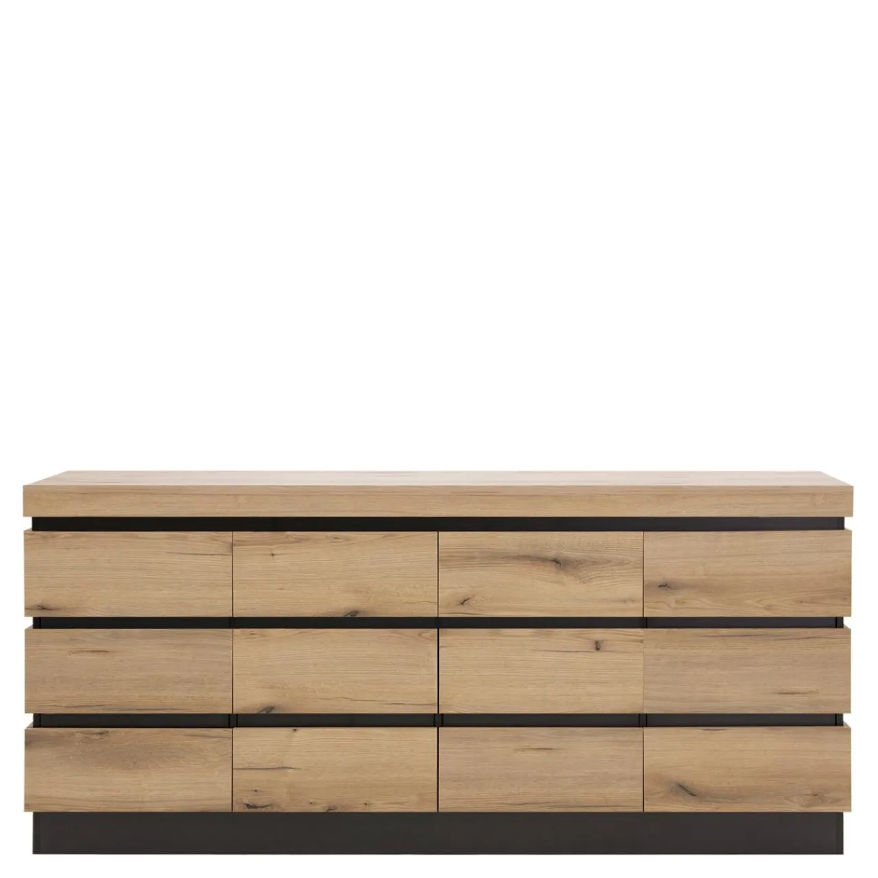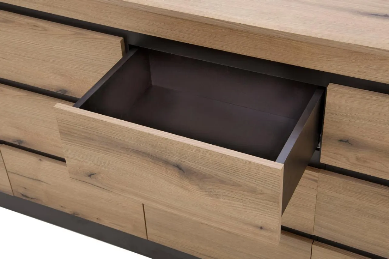Ta komoda CORTE bez problemu pomieści nadprogramowe talerze, szklanki i kieliszki, bo ma aż 201,2 cm szerokości i 10 wnęk.
