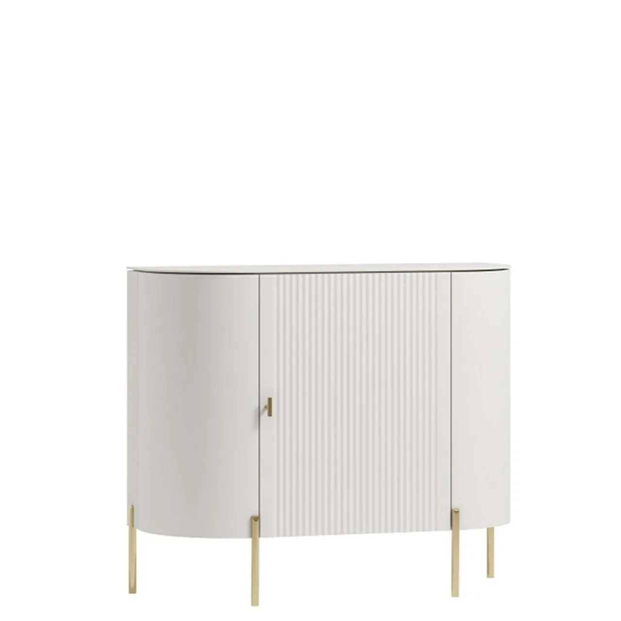 Złote uchwyty i nóżki sprawiają, że meble nabierają charakteru glamour w nowej odsłonie. Proste kształty wykończeń cieszą oko delikatnie odbijanym światłem.