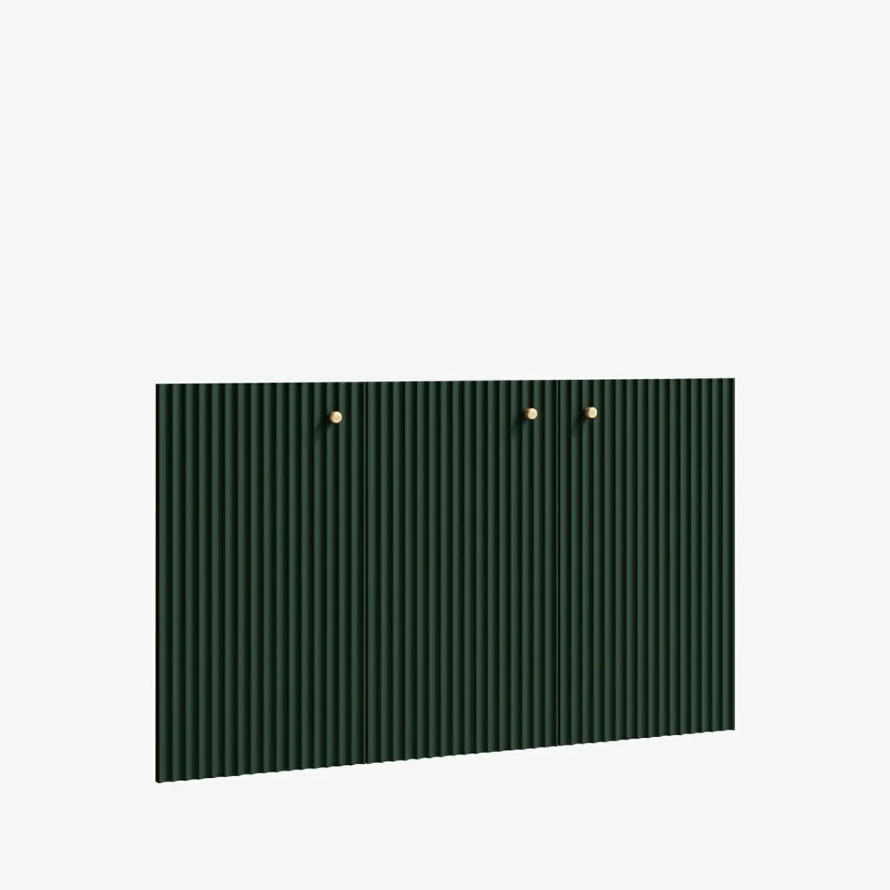 To zielone, potrójne drzwi z metalowymi uchwytami w złotym kolorze.