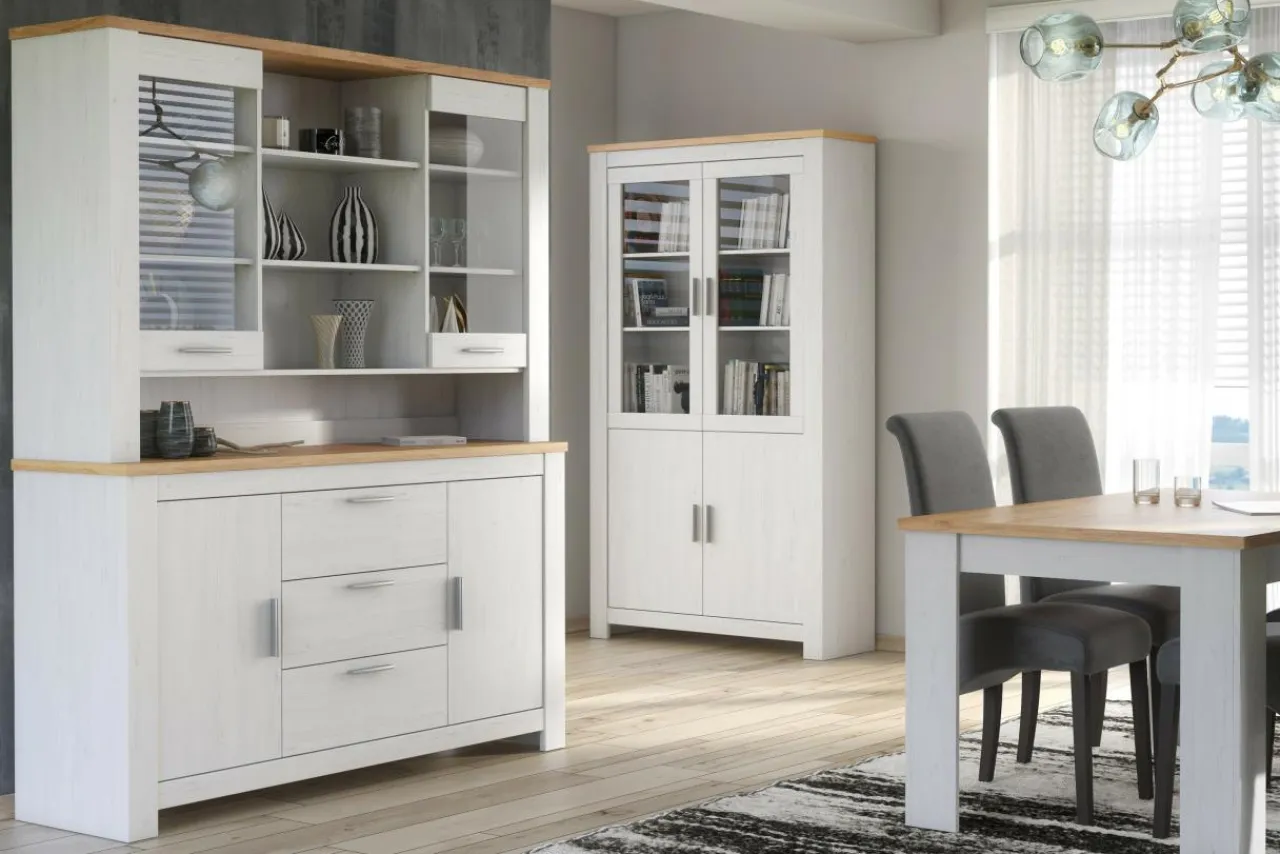 Bufet pozwoli Ci w elegancki sposób przechowywać komplet talerzy, ozdobną wazę i inne elementy domowego wyposażenia.