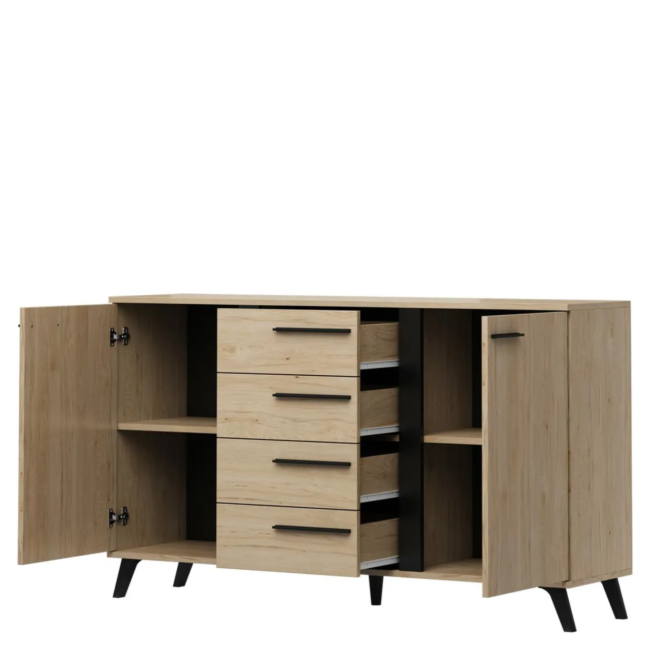 Wnętrze komody kryje 4 pojemne wnęki oraz 4 szuflady. Blat posłuży do eksponowania interesujących dodatków czy pamiątek.