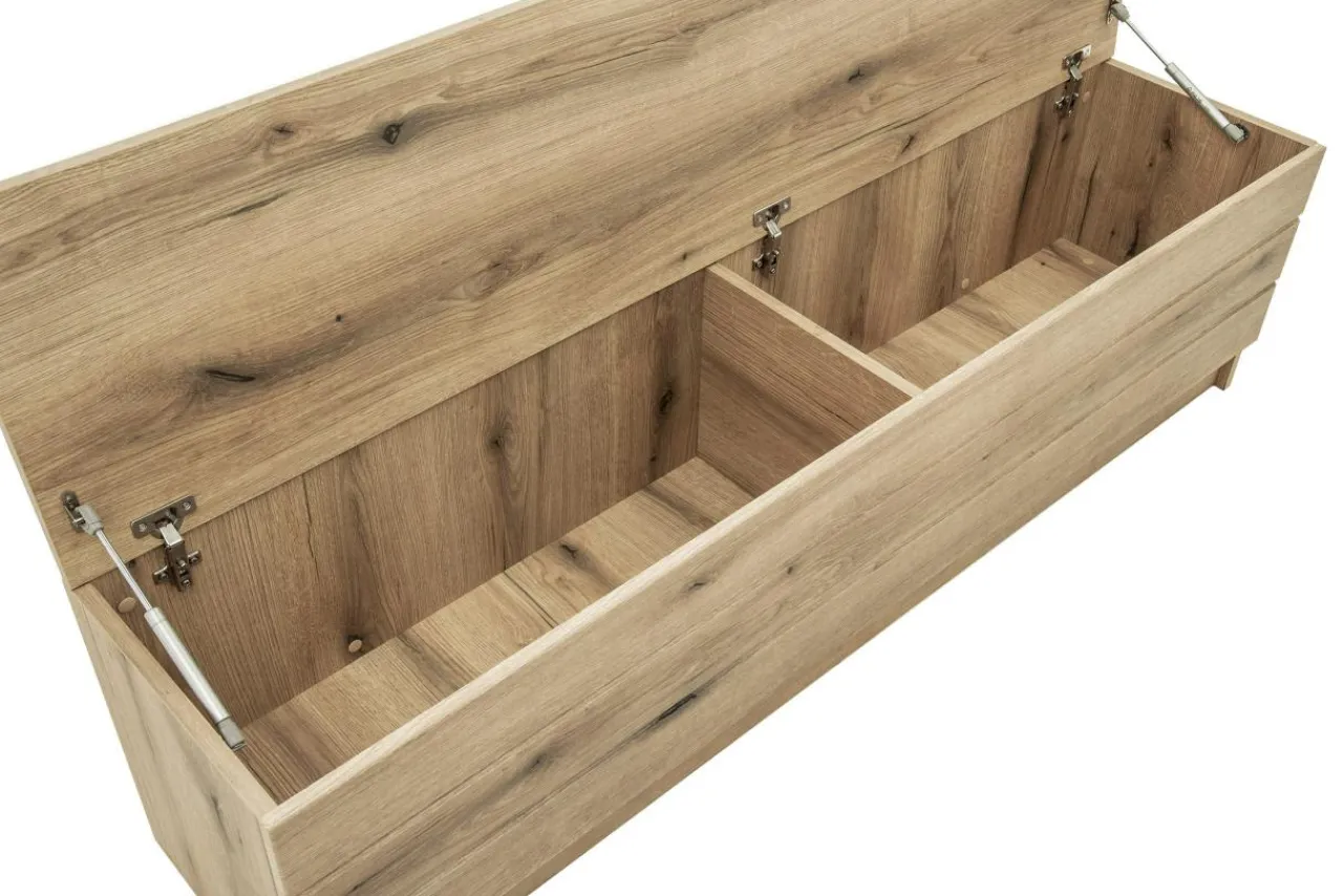 - Dzięki wykończeniu w jasnym odcieniu przybrzeżnego dębu skrzynię DENVER możesz umieścić także we wnętrzu industrialnym.