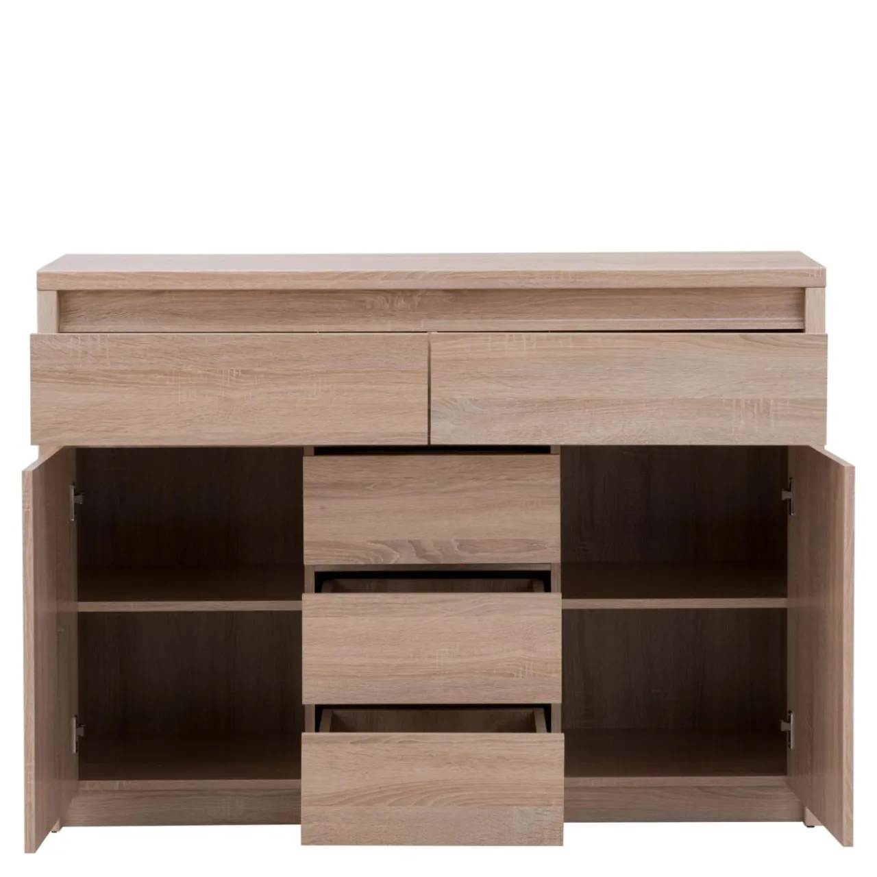 Uniwersalny kształt i wyposażenie komody sprawia, że można ją postawić zarówno w salonie, jak i sypialni czy przedpokoju.