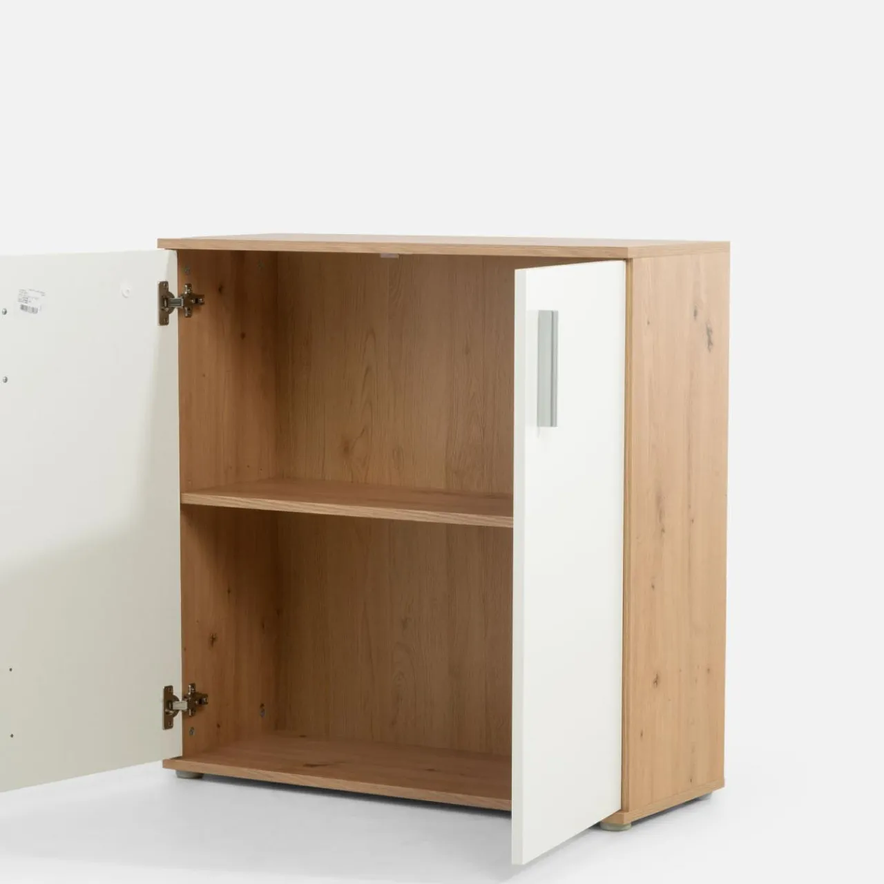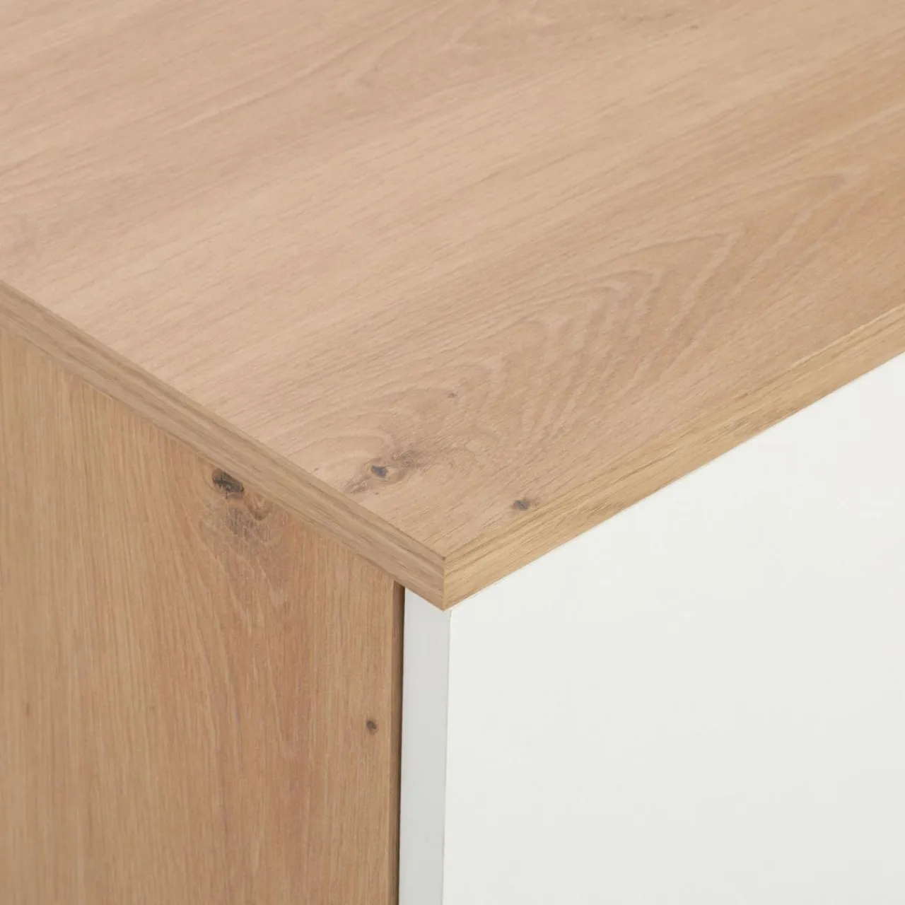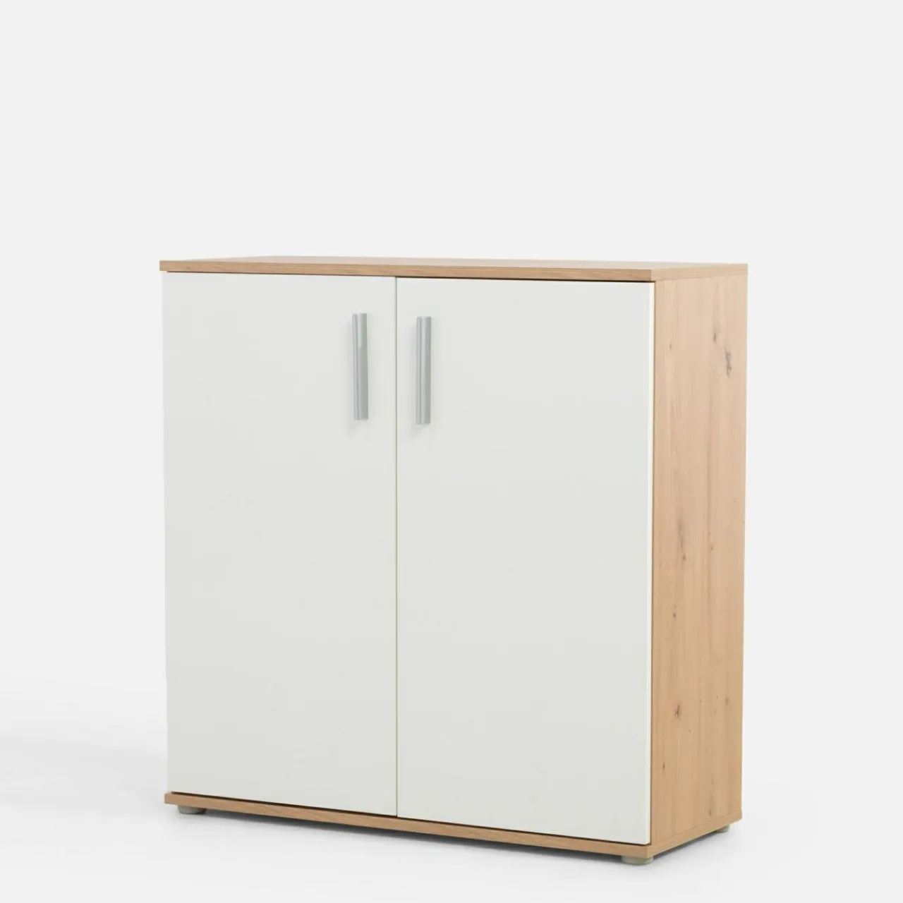 Komody IKOLI łączą nowoczesny design z praktycznym przechowywaniem. Jasne fronty i korpus w odcieniu dębu artisan dodają wnętrzu lekkości. Różne układy – od prostych dwudrzwiowych modeli po warianty z szufladami – sprawdzą się w salonie, sypialni czy biurze.