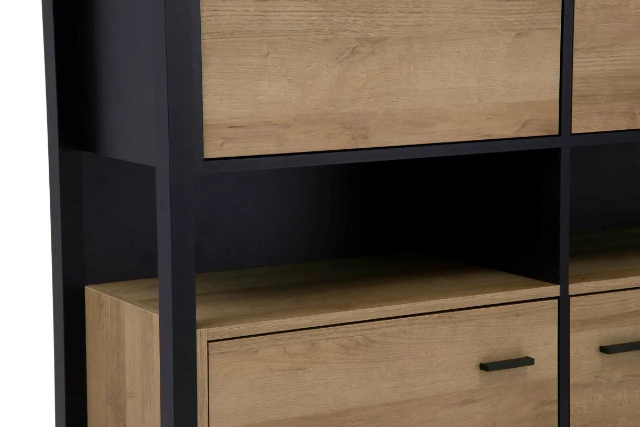 Urządzasz mieszkanie w industrialnym stylu? Kolekcja mebli HIGH ROCK to połączenie dekoru dąb riviera z pełną głębi czernią, która przyciągnie Twoją uwagę.