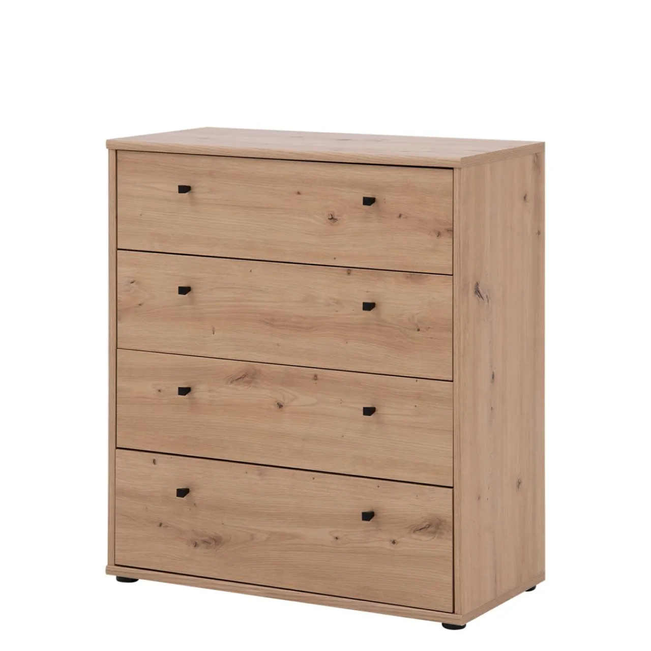 Doskonałym przykładem wykorzystania tej przestrzeni jest model komody TEMPRA wyposażony w 4 szuflady w całości wykonany z płyty meblowej i wykończony folią.