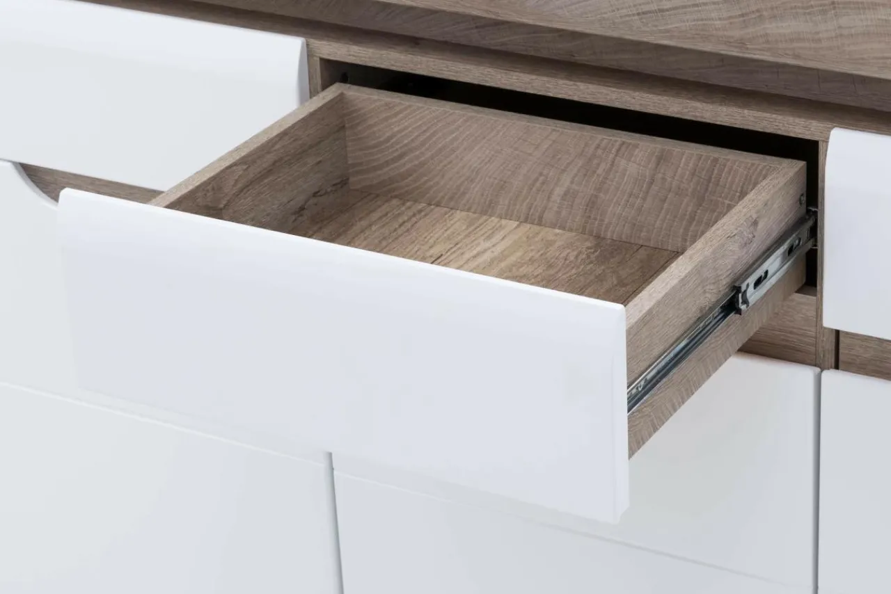 W drzwiach zamontowano zawiasy z systemem cichego domyku, dzięki czemu drzwi nie hałasują podczas zamykania.