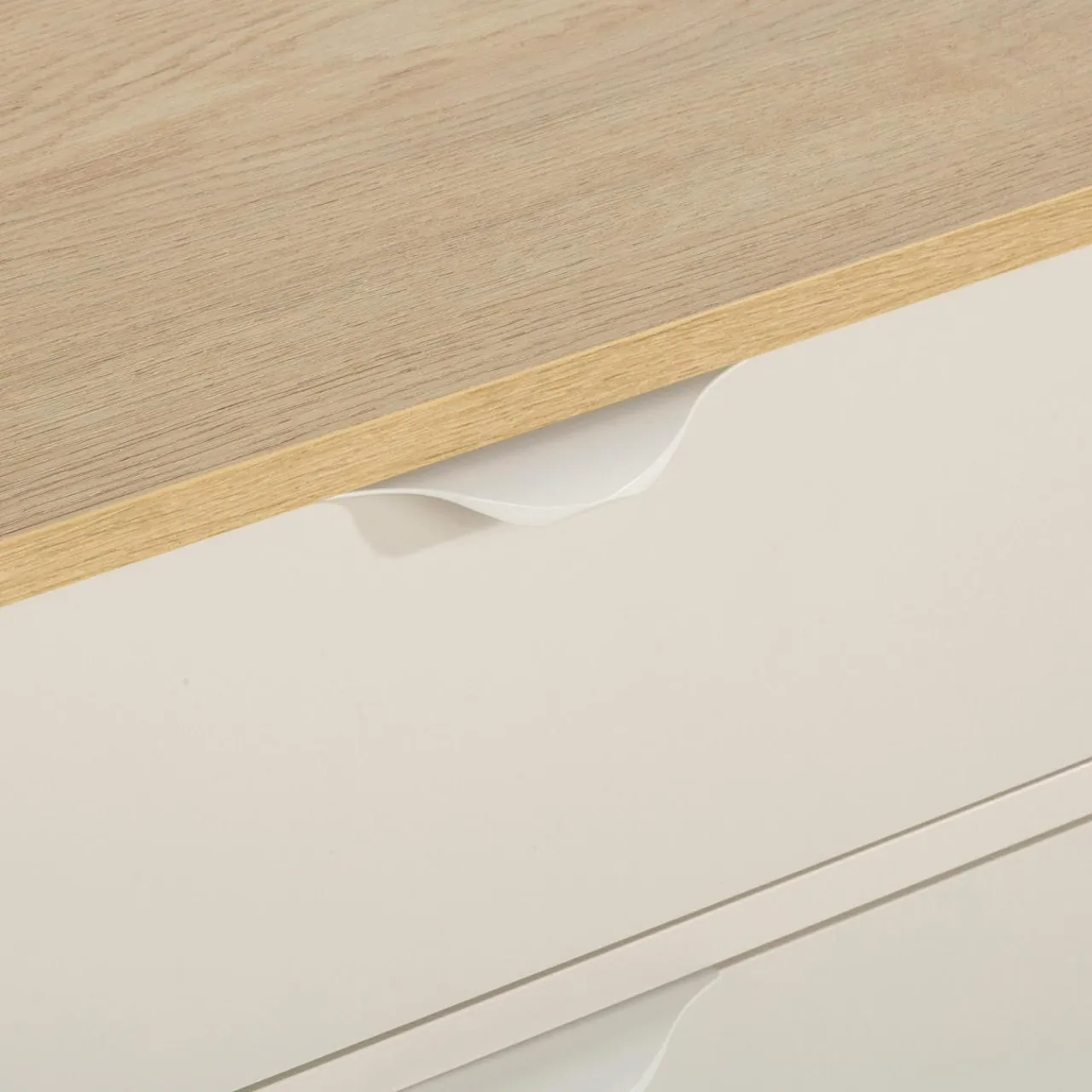 - Smukłe nóżki – nie tylko ułatwiają sprzątanie pod meblem, ale również dodają lekkości całej konstrukcji, dzięki czemu komoda nie przytłacza.