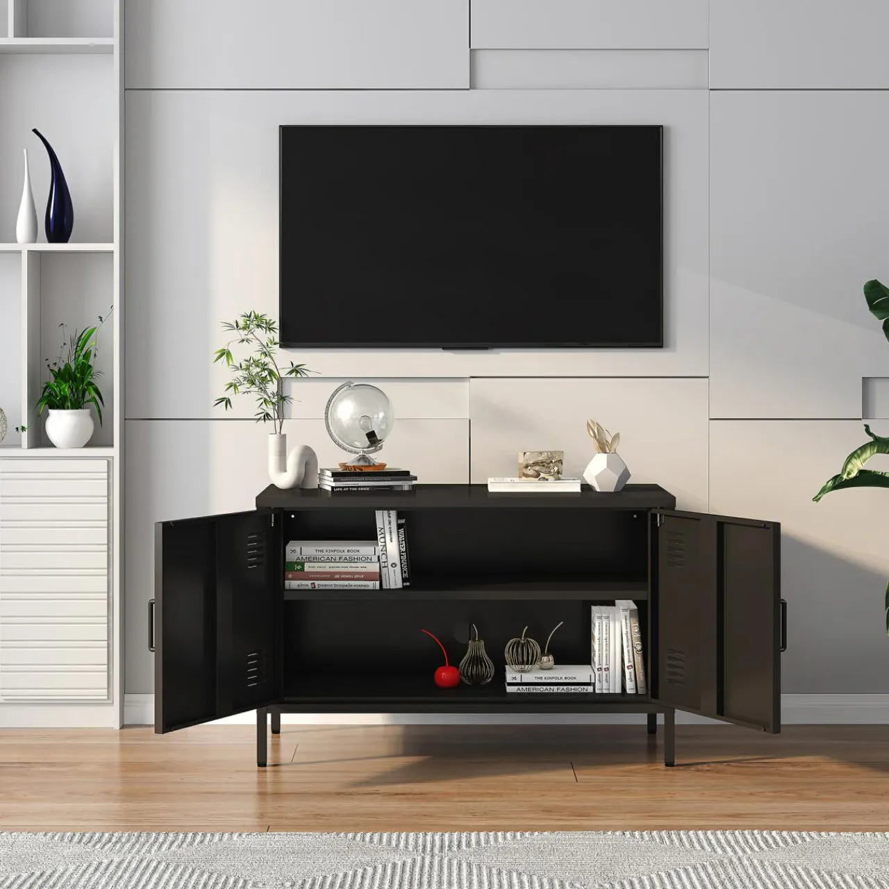- W środku 2 wnęki — szerokie półki wykorzystaj na przechowanie dokumentów i innych przedmiotów, które chcesz mieć pod ręką.
