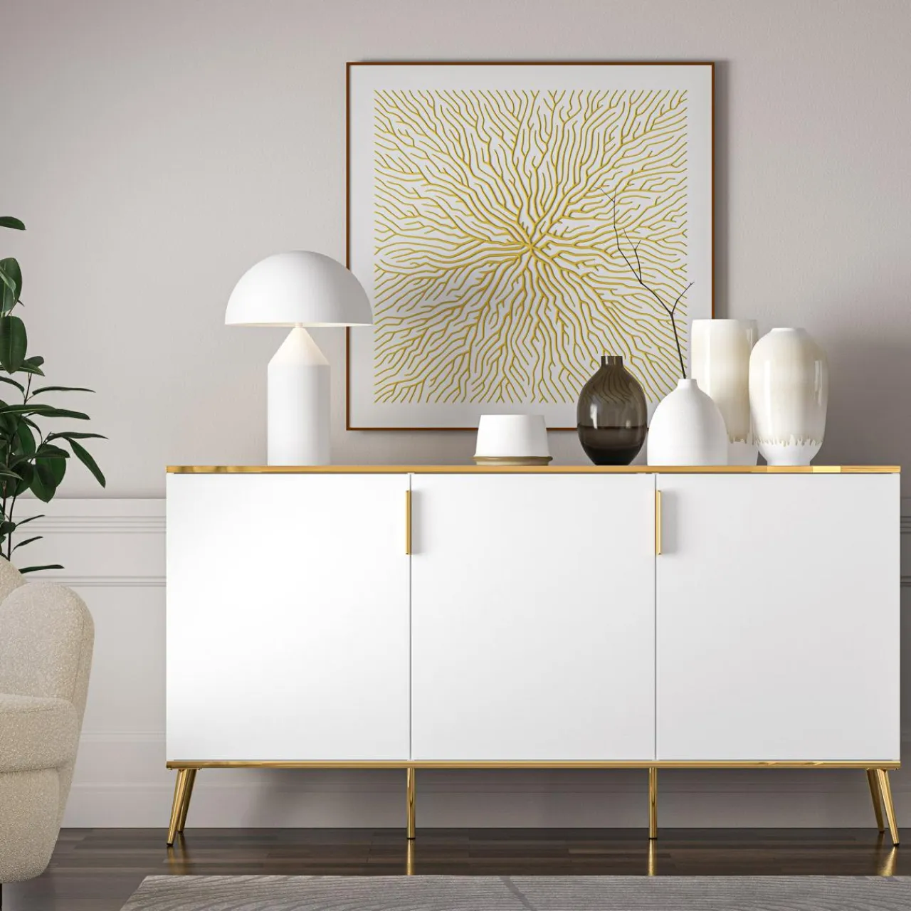 - Postaw na nowoczesne meble z połyskiem. Subtelne, złote elementy sprawią, że pomieszczenie przemieni się w eleganckie wnętrze w stylu glamour.