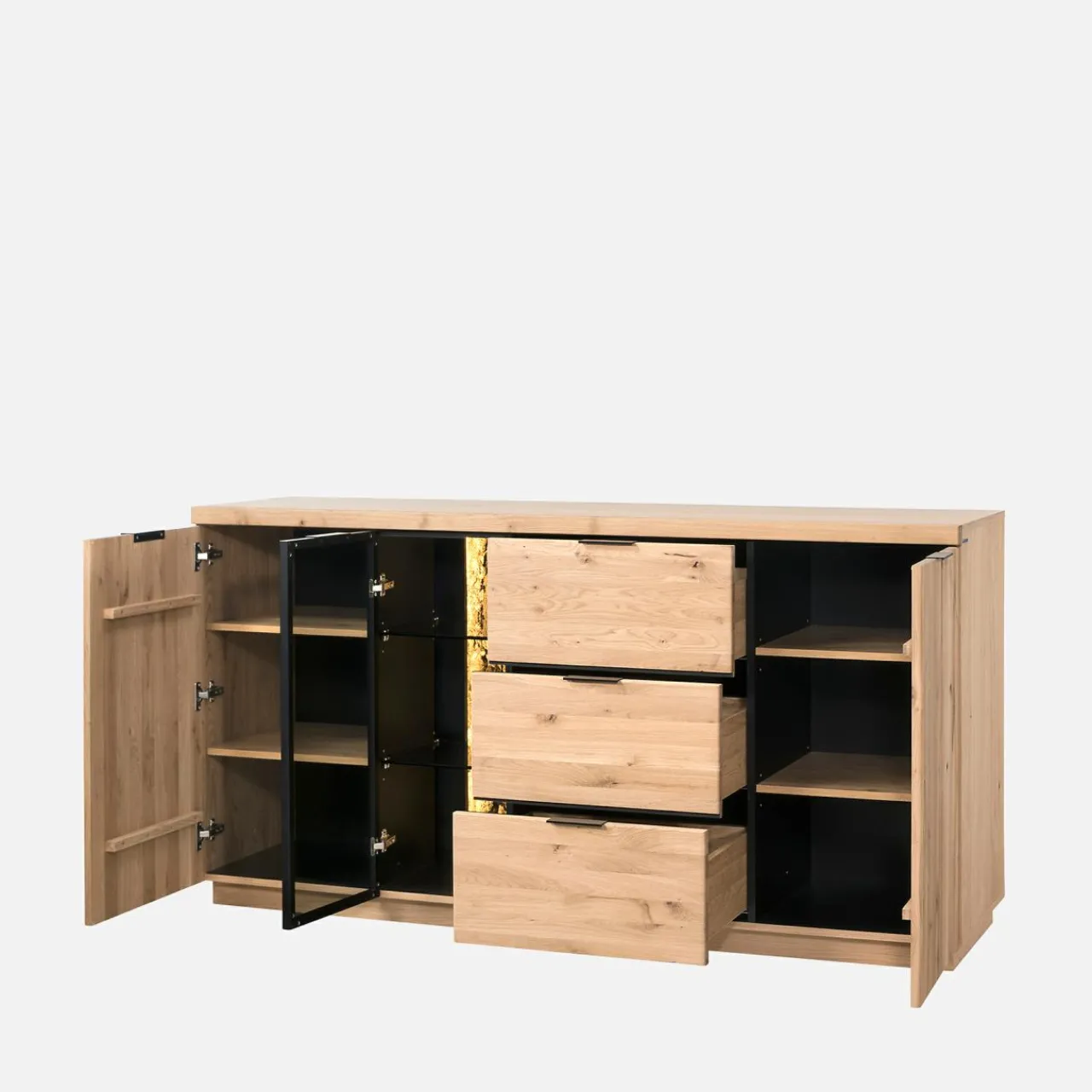 Z komodą NAPOLI łatwiej zachowasz codzienny porządek. W szafkach i szufladach każdy przedmiot znajdzie swoje miejsce, a dekoracje wyeksponujesz za szklanym frontem.