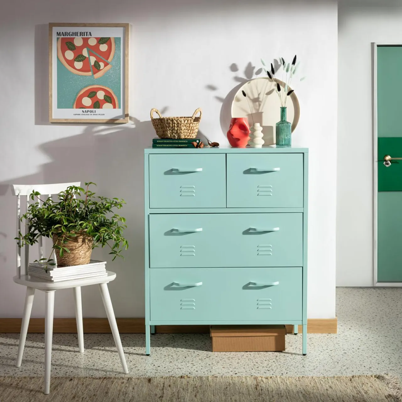 Komody|inny Komoda metalowa z szufladami BLEIZ turkusowa