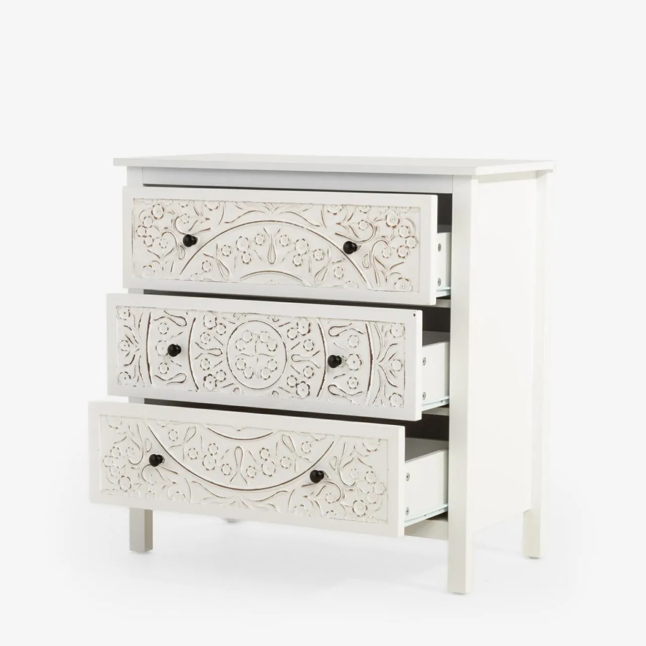 Komoda FINESELLO pozwoli Ci uporządkować garderobę. Dzięki szufladom szybko sięgniesz po ubrania podczas porannych przygotowań do nadchodzącego dnia.