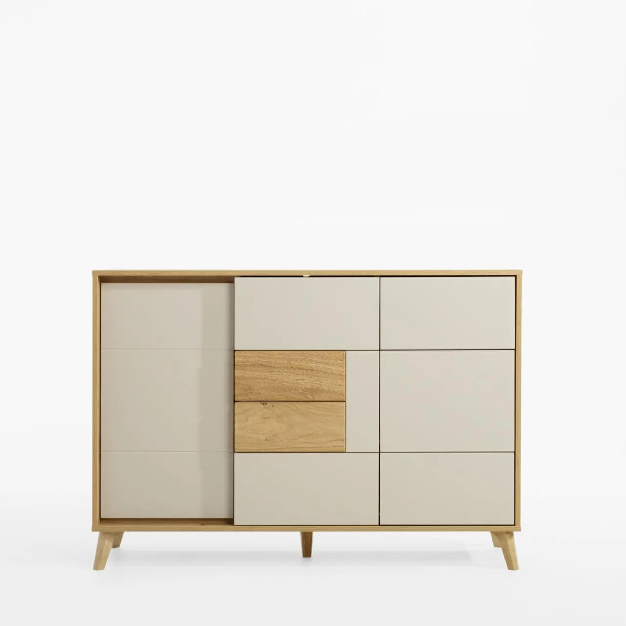 Komoda z szufladami BRUNO to niezbędnik w salonie. Z nią łatwo uporządkujesz dodatki w przedpokoju czy dokumenty w salonie. Szuflady zdadzą egzamin, gdy trzeba będzie sprawnie sięgnąć po drobne przedmioty.