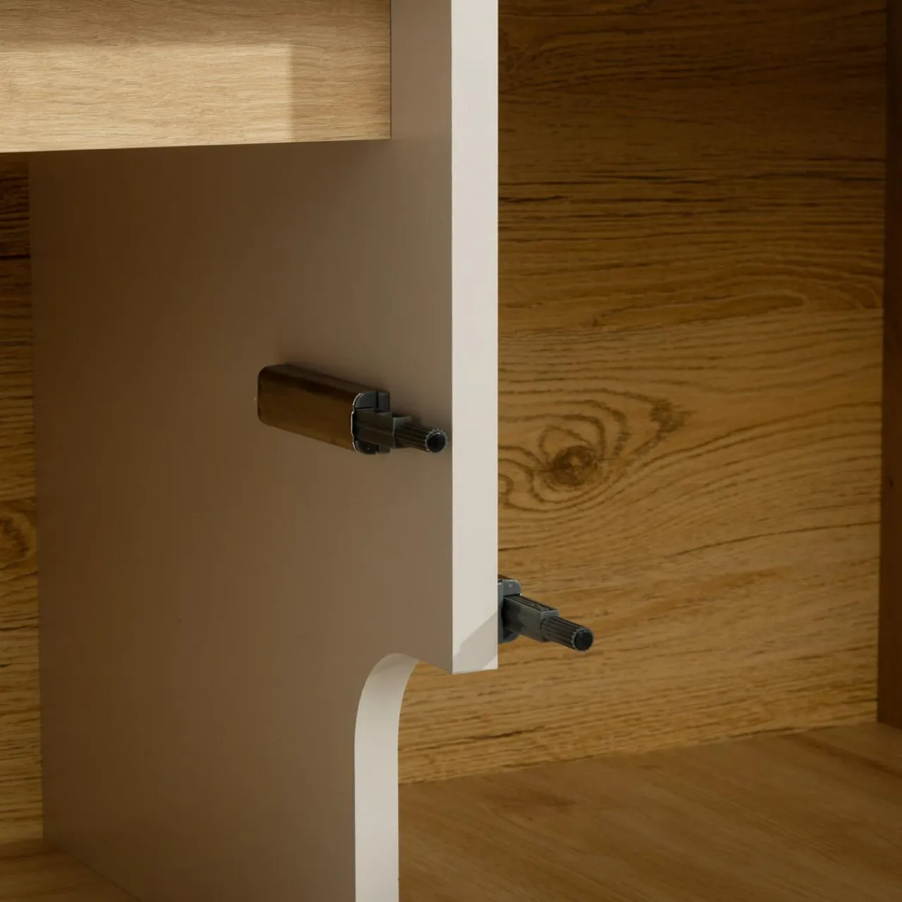 - Trzaski i hałasy odejdą w zapomnienie – zarówno szuflady jak i drzwi posiadają prowadzenie z miękkim domykiem.