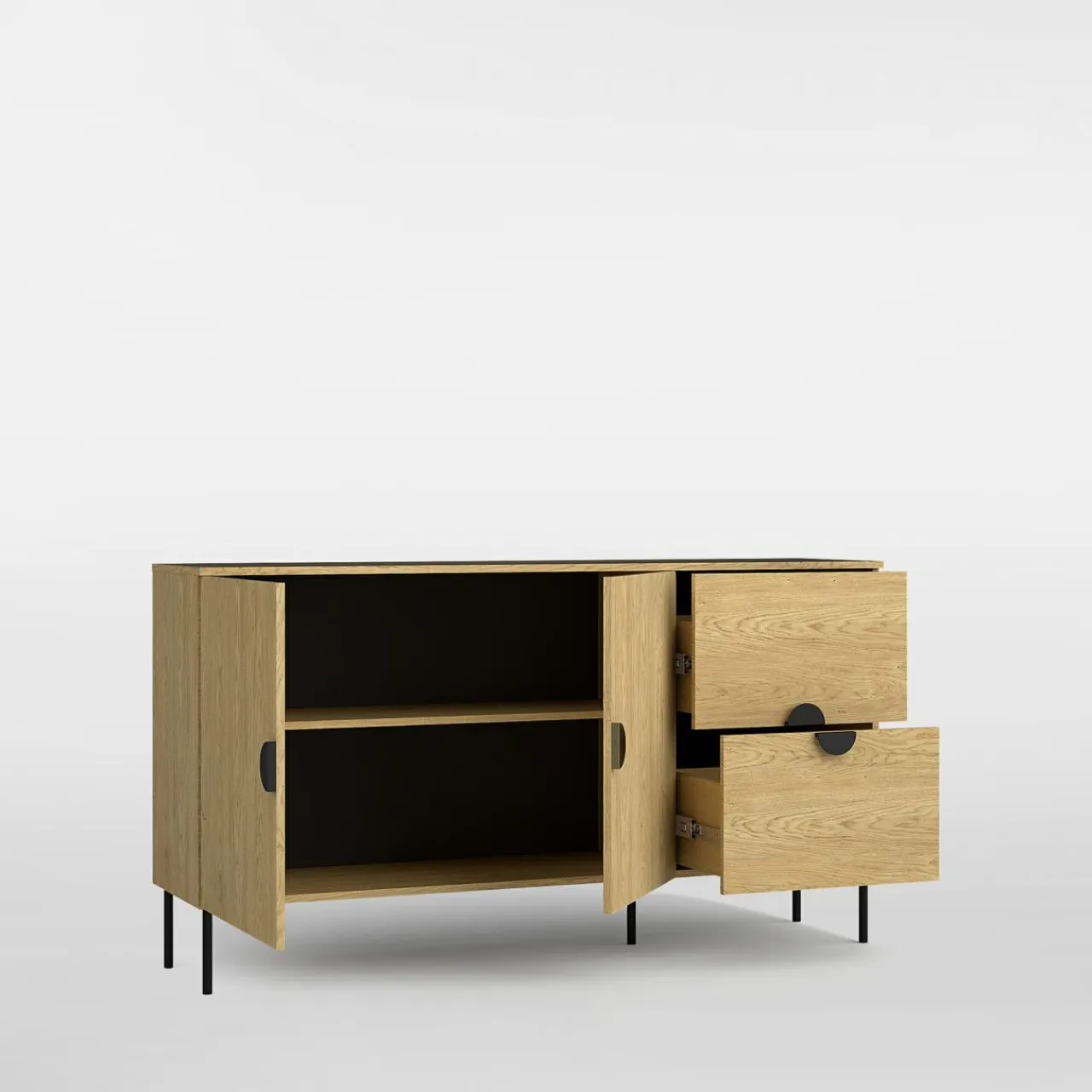 - Meble charakteryzuje wykończenie w odcieniu dębu baltic. Rysunek drewna tworzy przytulny klimat w pomieszczeniu