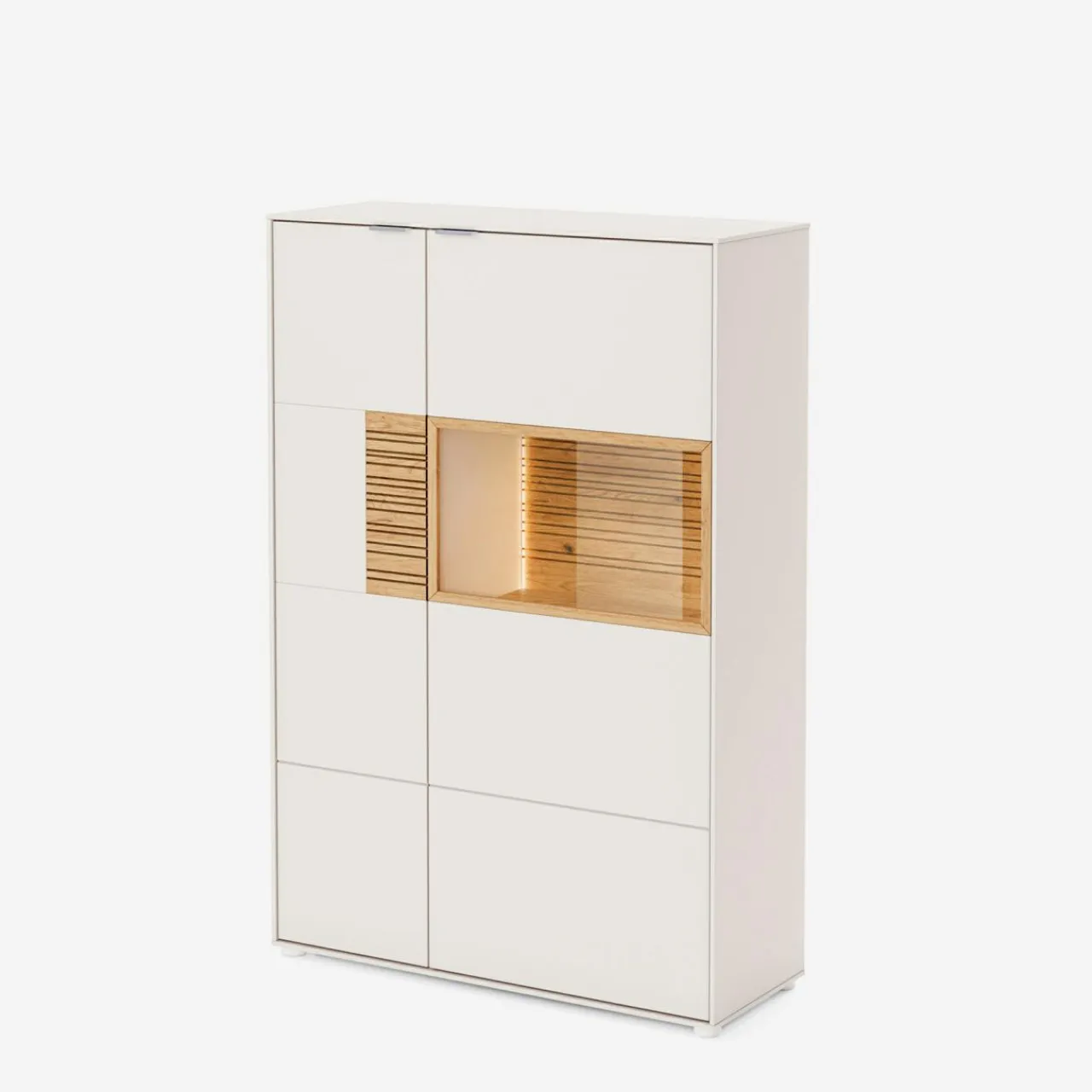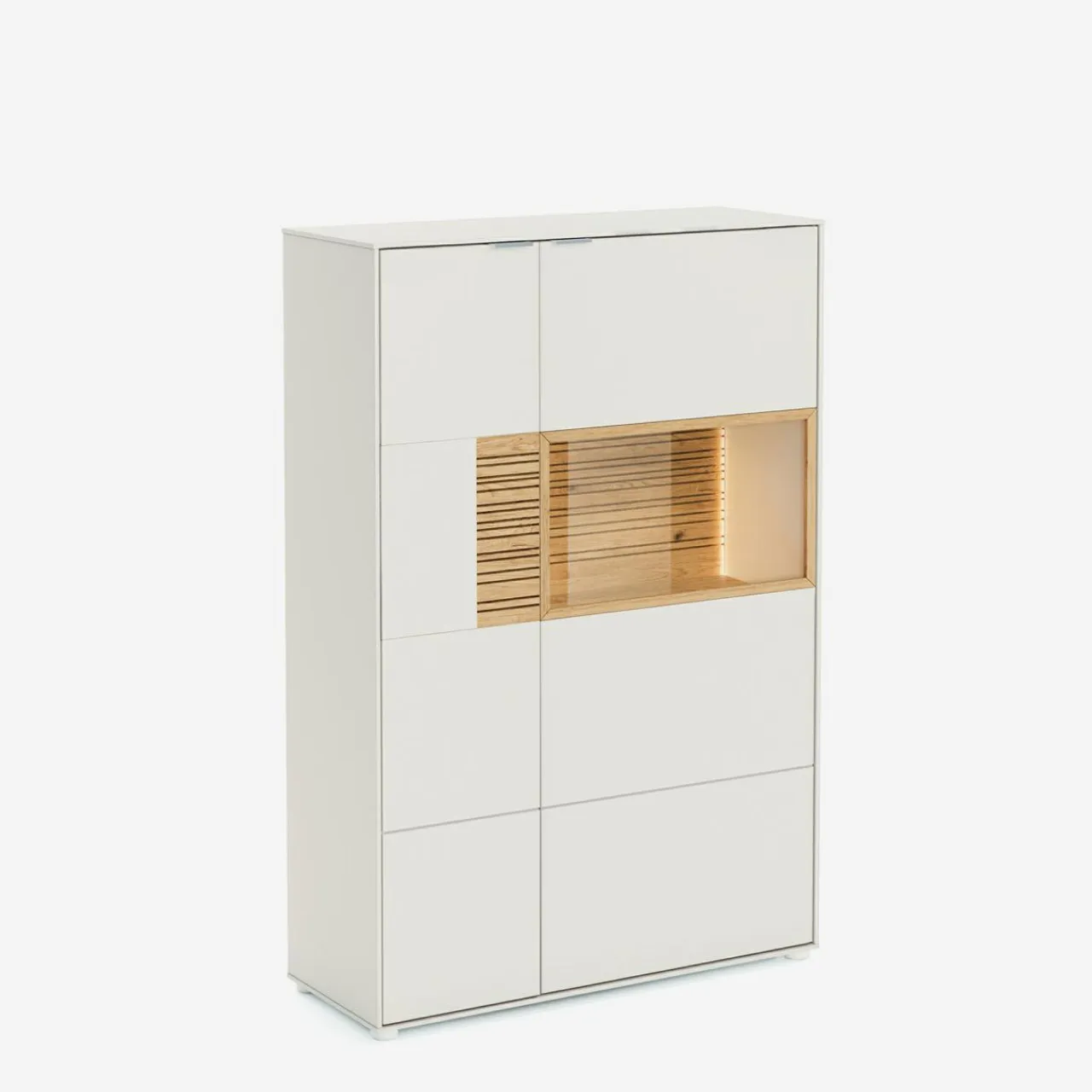 W komodzie PINARO z częściowo przeszklonym frontem wyeksponujesz swoje pamiątki, dekoracje czy naczynia. Resztę schowasz w zabudowanych szafkach.