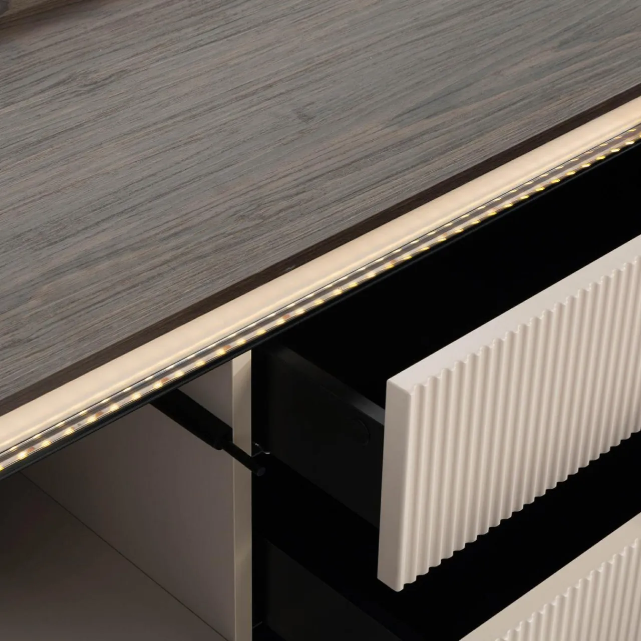 Subtelne podświetlenie listwą LED to opcja zawarta w cenie. Stonowane światło nie będzie męczyło oczu, szczególnie wieczorami.