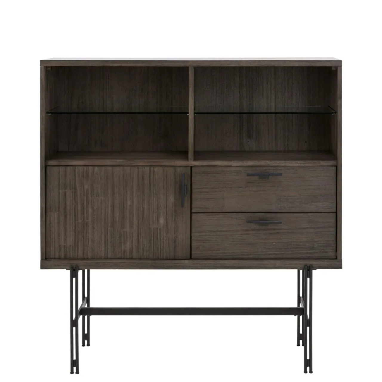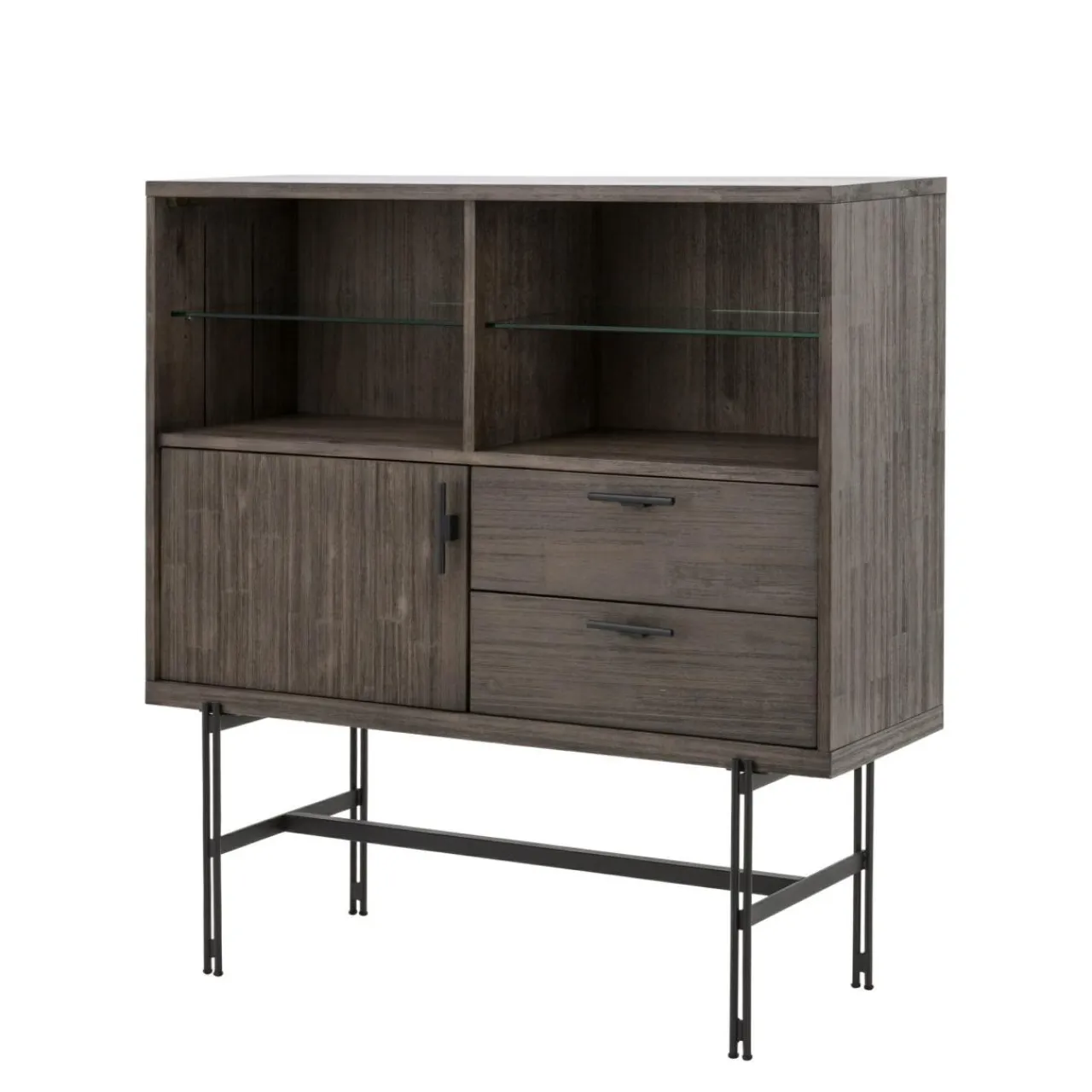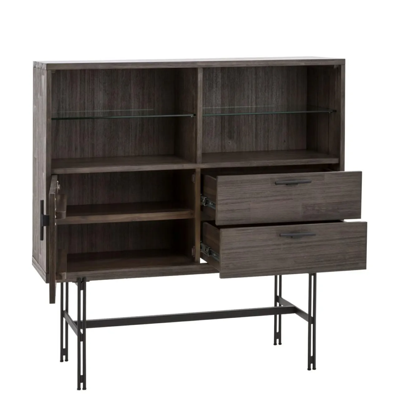 Całość mebla została wykonana z litego drewna akacjowego. Użyte metalowe uchwyty doskonale komponują się z całością.