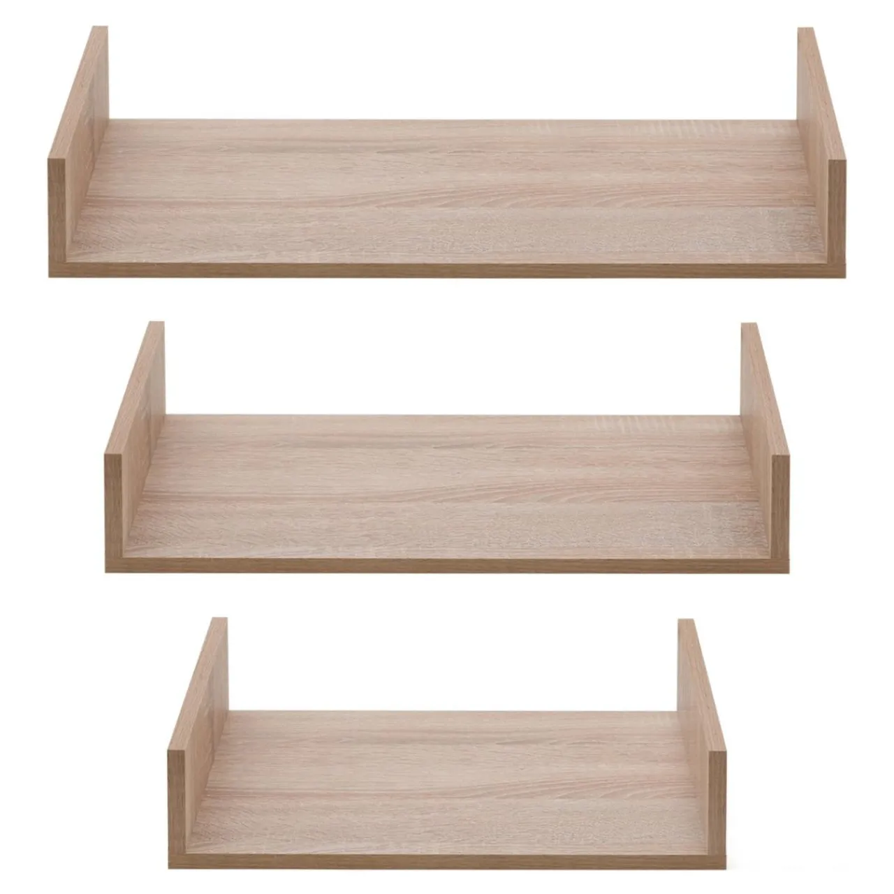 Półki TRIO zostały wykonane z płyty meblowej wykończonej laminatem w kolorze dąb sonoma.