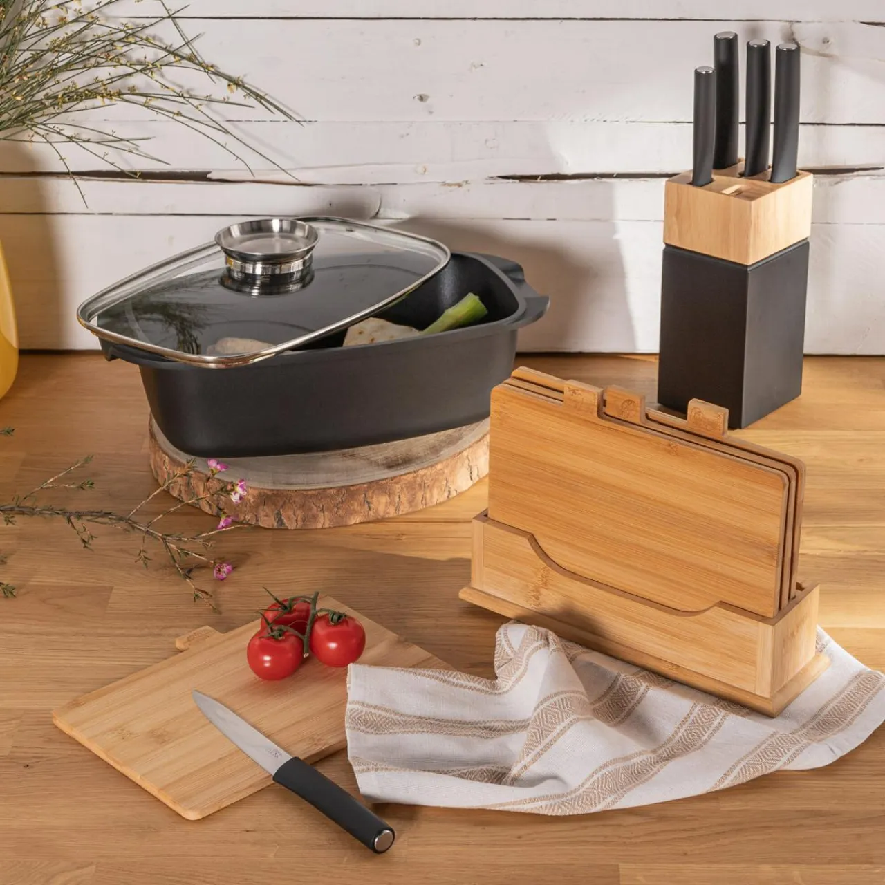 - Dzięki praktycznemu blokowi każdy nóż ma swoje miejsce, oraz jest odporny na uszkodzenia i zniszczenia.