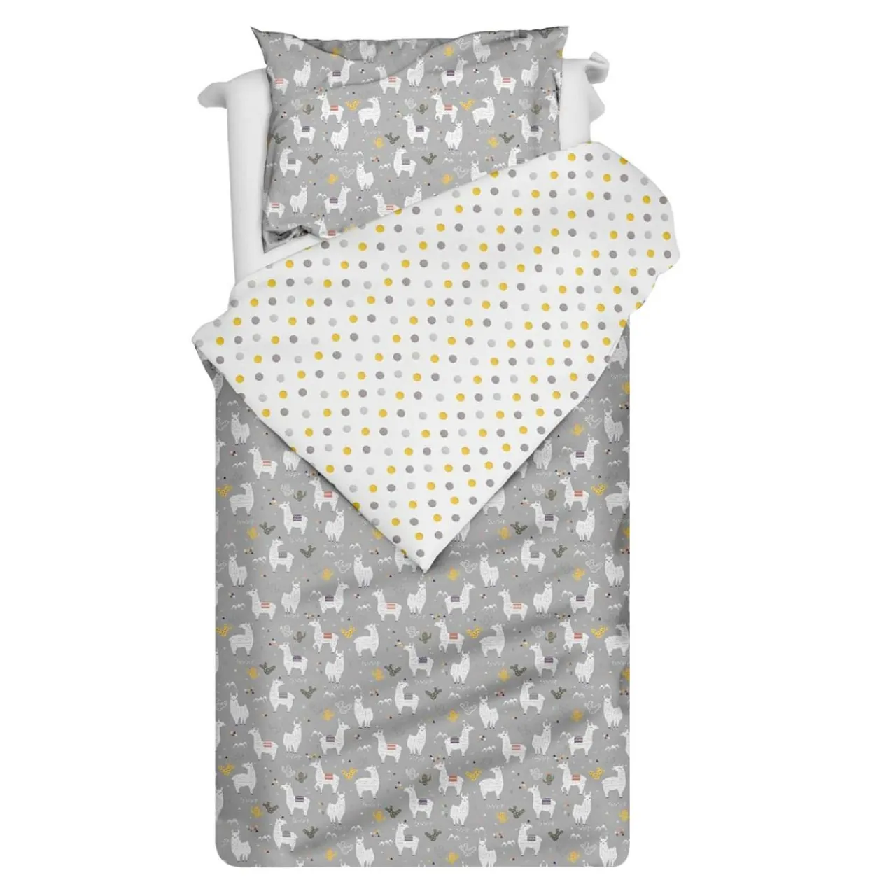 Dwustronna pościel bawełniana ALPAKA, zapinana na zamek błyskawiczny, zapewni komfort i trwałość podczas jej użytkowania.Zabawny deseń tkaniny będzie ozdobą każdego pokoju młodzieżowego lub sypialni, wywołując uśmiech na twarzy domowników. W skład zestawu wchodzi: 1 poszwa 140×200 cm i 1 poszewka 70×80 cm.
