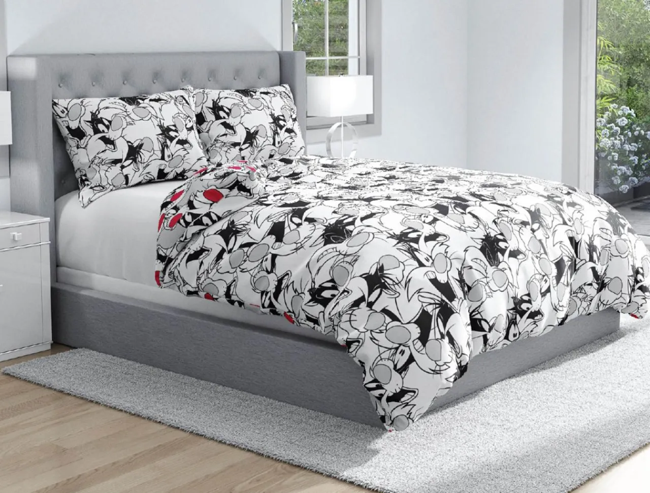 Podaruj sobie lub komuś bliskiemu komplet pościeli z satyny bawełnianej LOONEY TUNES SYLWESTER.