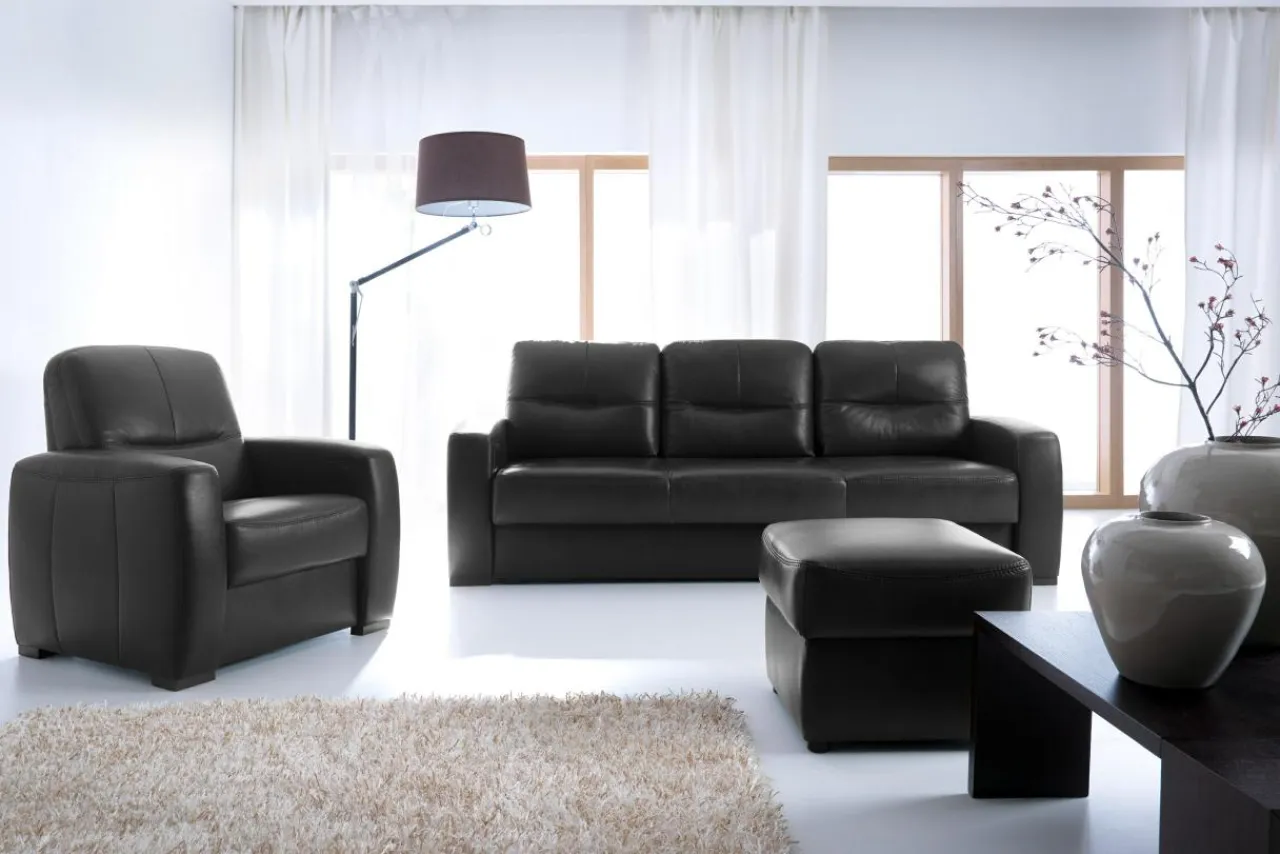Nowoczesna linia i klasyczne obicie ze skóry – komplet wypoczynkowy YUKA stworzy w Twoim salonie elegancką strefę wypoczynkową, która stanie się piękną wizytówką wnętrza.