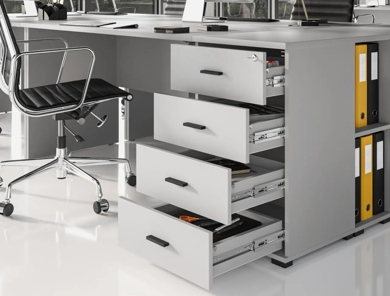 - 4 szuflady pozwolą na organizację i zachowanie porządku w rzeczach codziennej pracy.