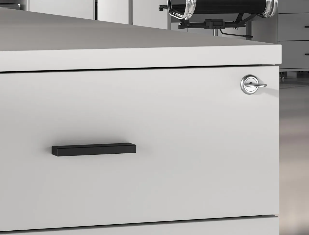 - Kontener możesz dostawić do biurek BARDO, przedłużając blat roboczy.