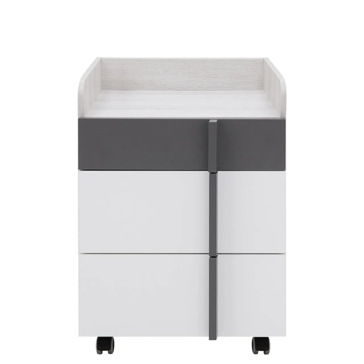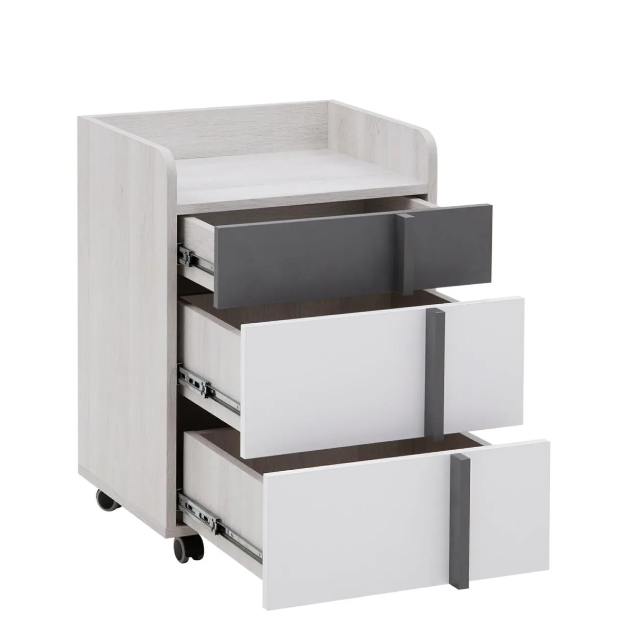 - Kontenerek z 3 szufladami REMO został wykonany z płyty meblowej.