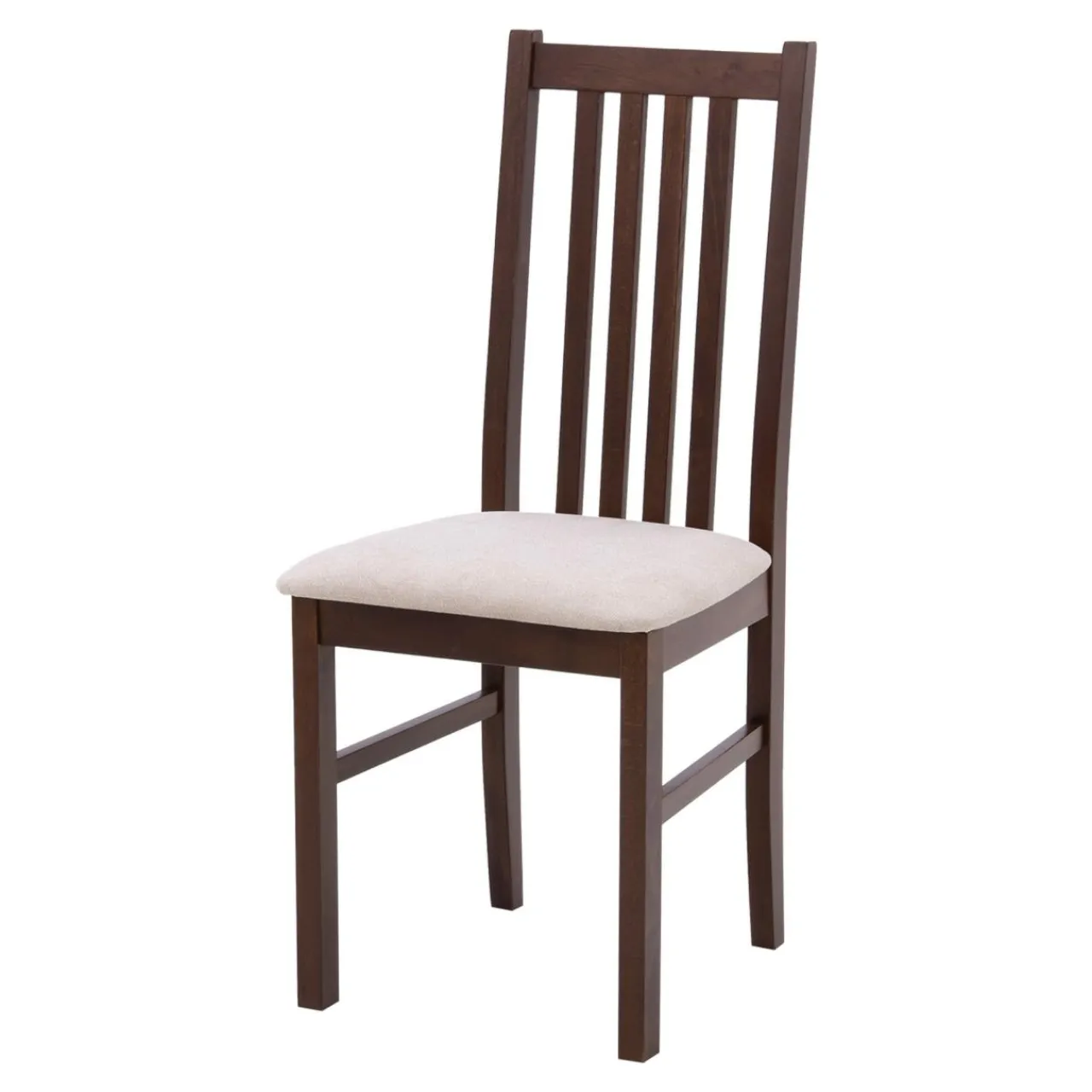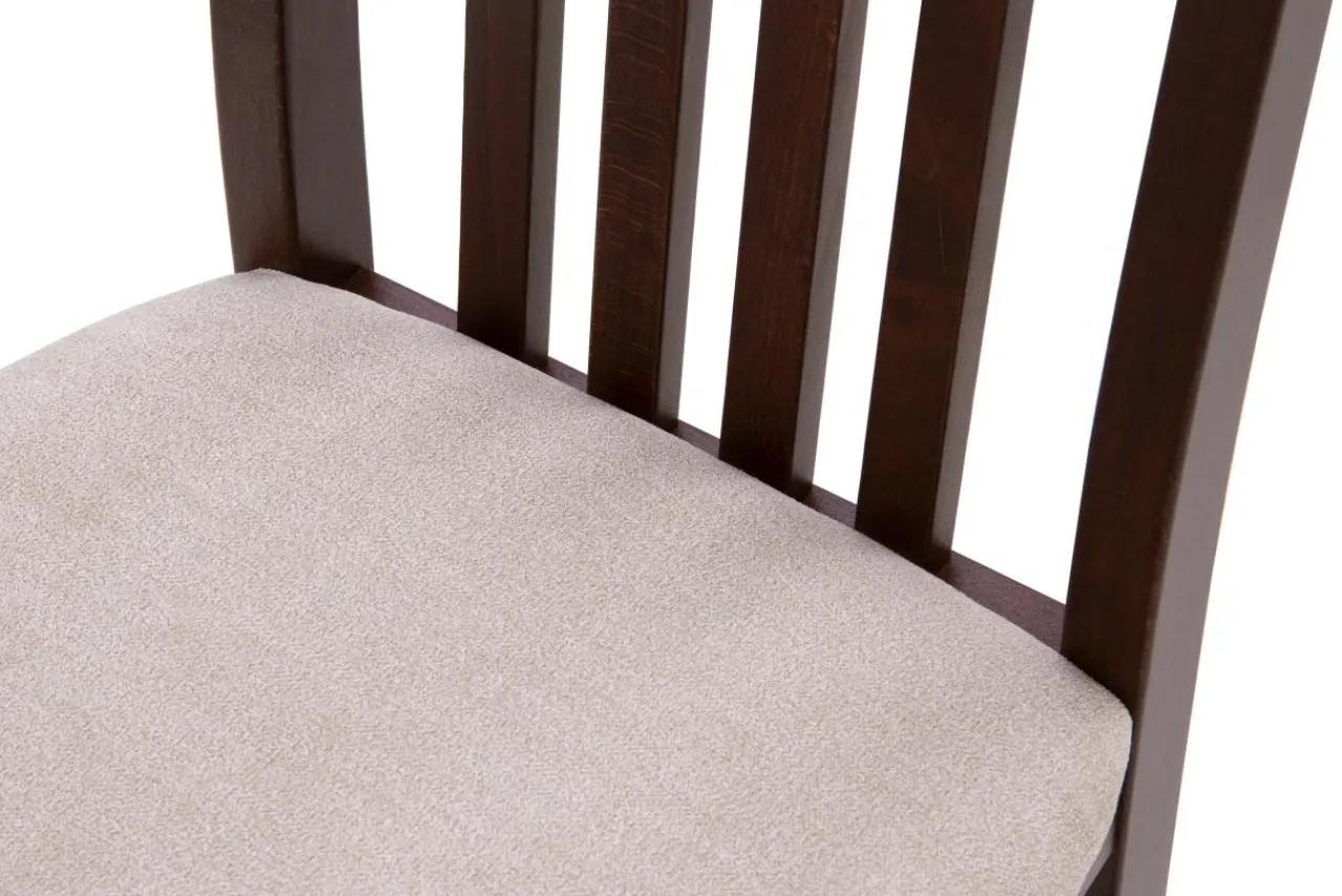 - Miękkie siedzisko pokrywa tkanina w jasnym, beżowym kolorze, który doda przytulności Twojemu salonowi lub jadalni.